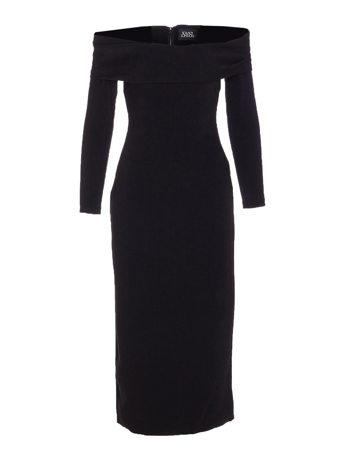 SOLACE LONDON: knee length dresses - Black Yuni Midi Dress