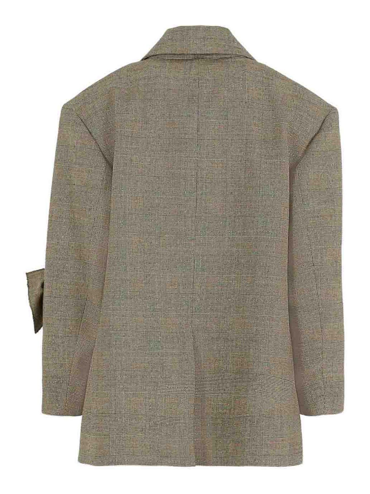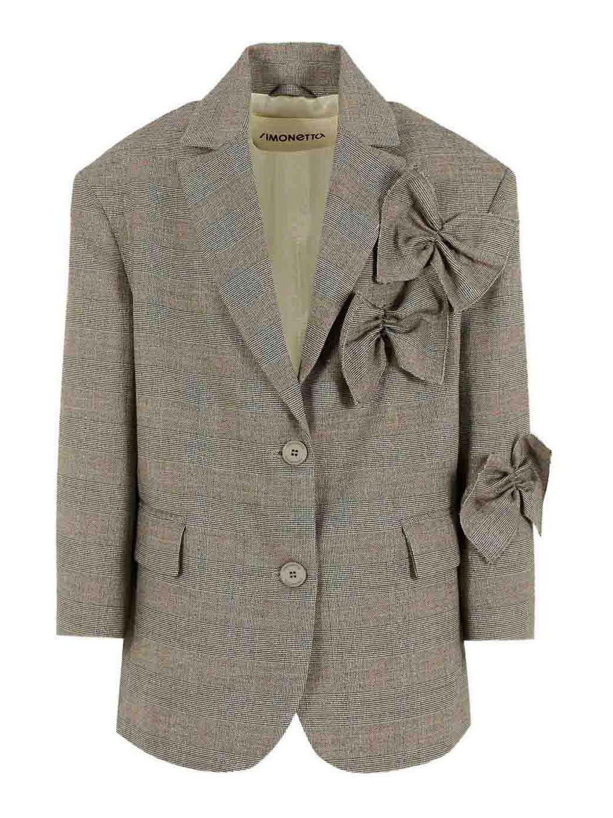 Green checked pattern with front bow with classic lapel buttoning front flap pockets /