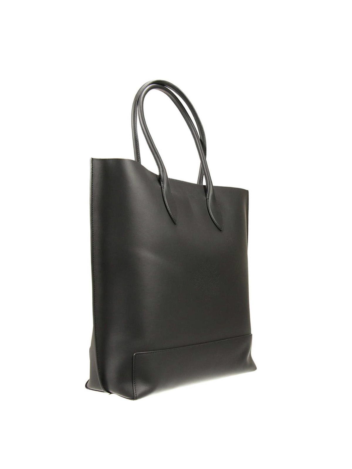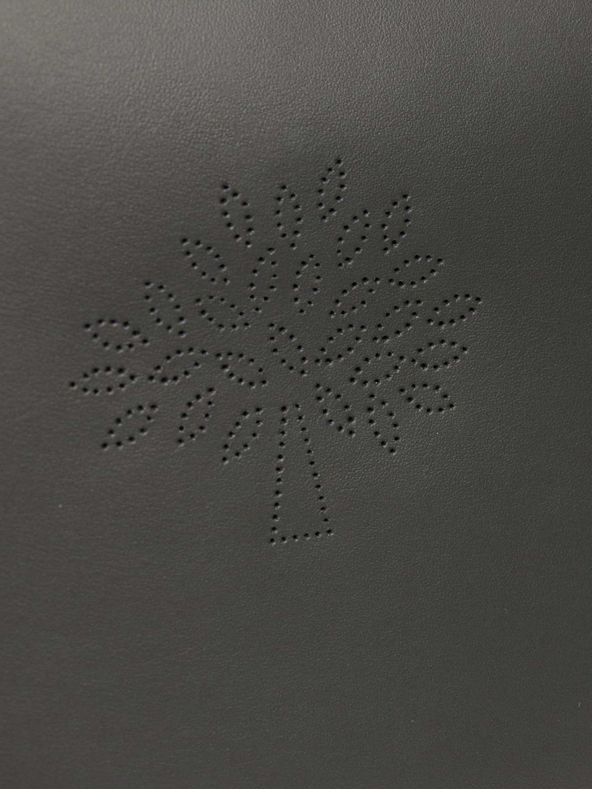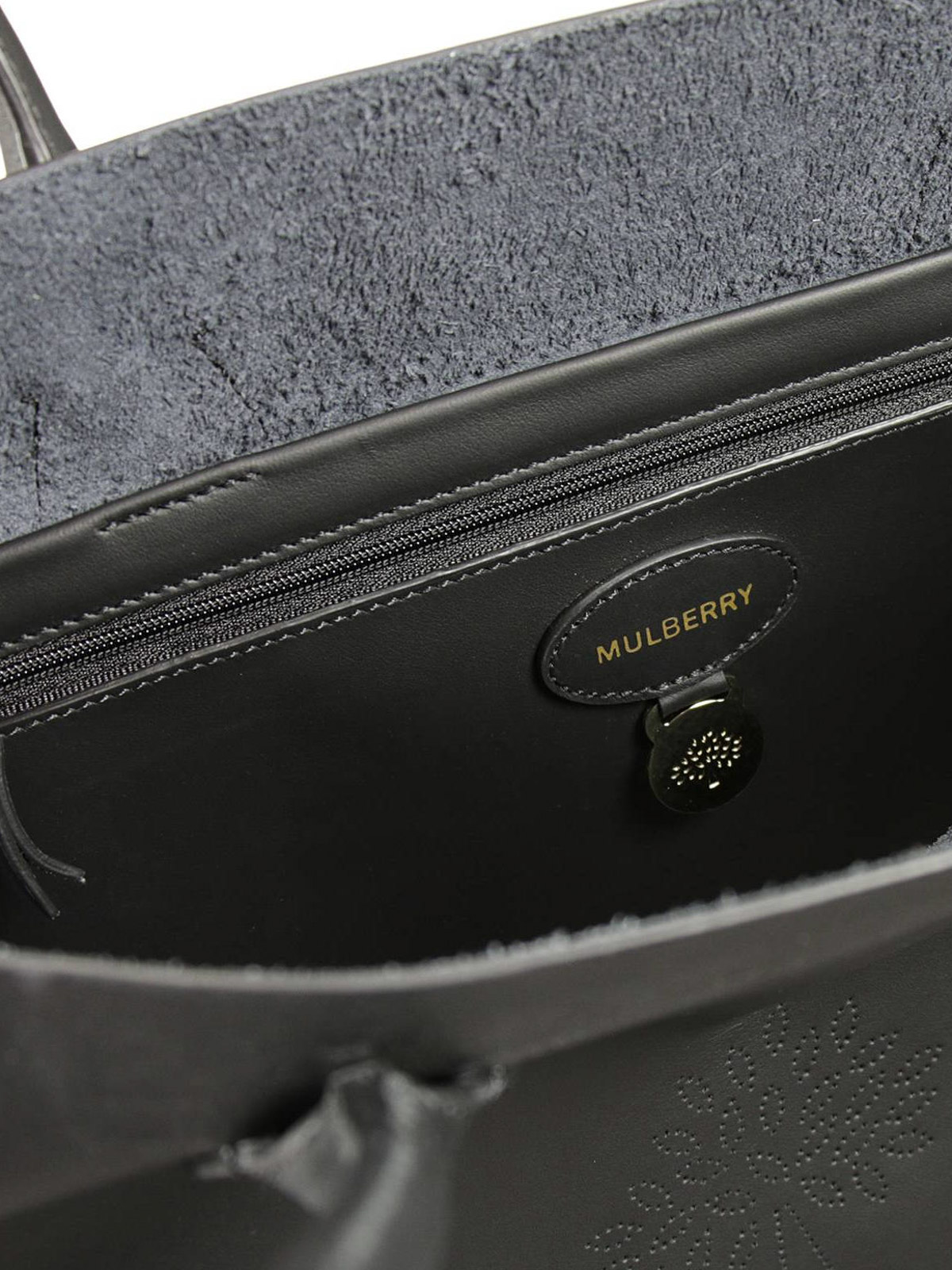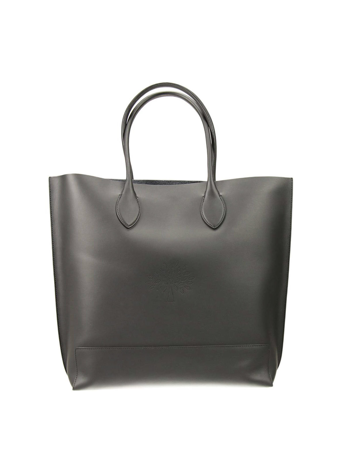 Leather tote featuring perforated Mulberry Tree logo, double leather handles, tonal stitching. One internal zip pocket with metal Mulberry tree keyfob. Roomy interior in brushed leather. Leather reinforced patches at bottom.