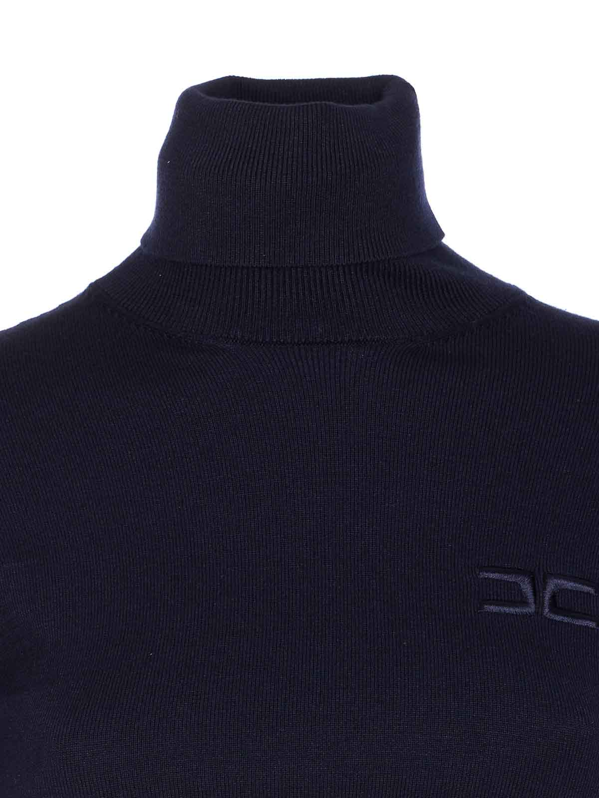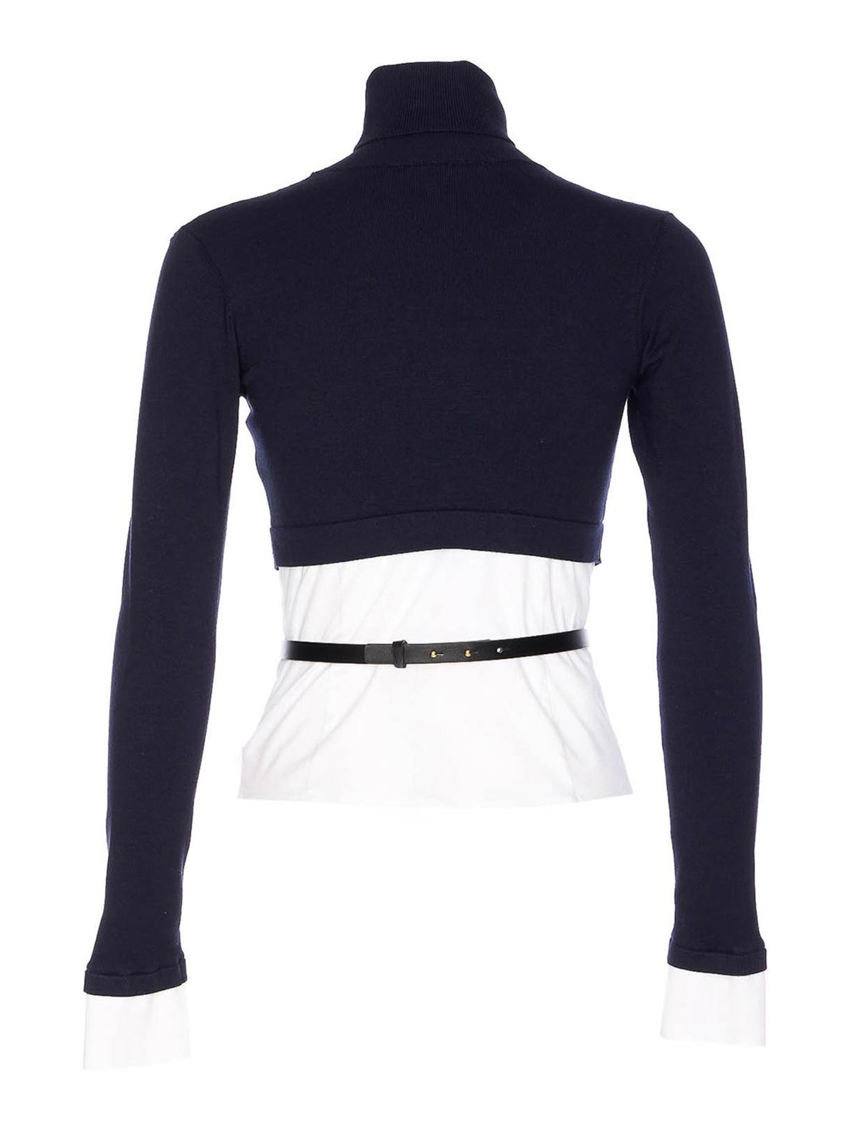 Elisabetta franchi blue and white sweater high neck shirt belt on waist