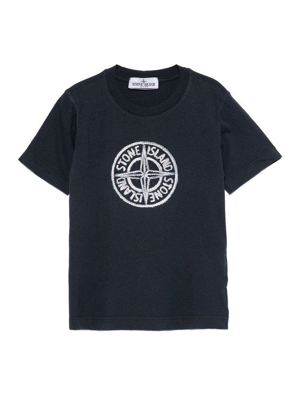 STONE ISLAND: t-shirts - Blue Cotton Short-Sleeved T-Shirt