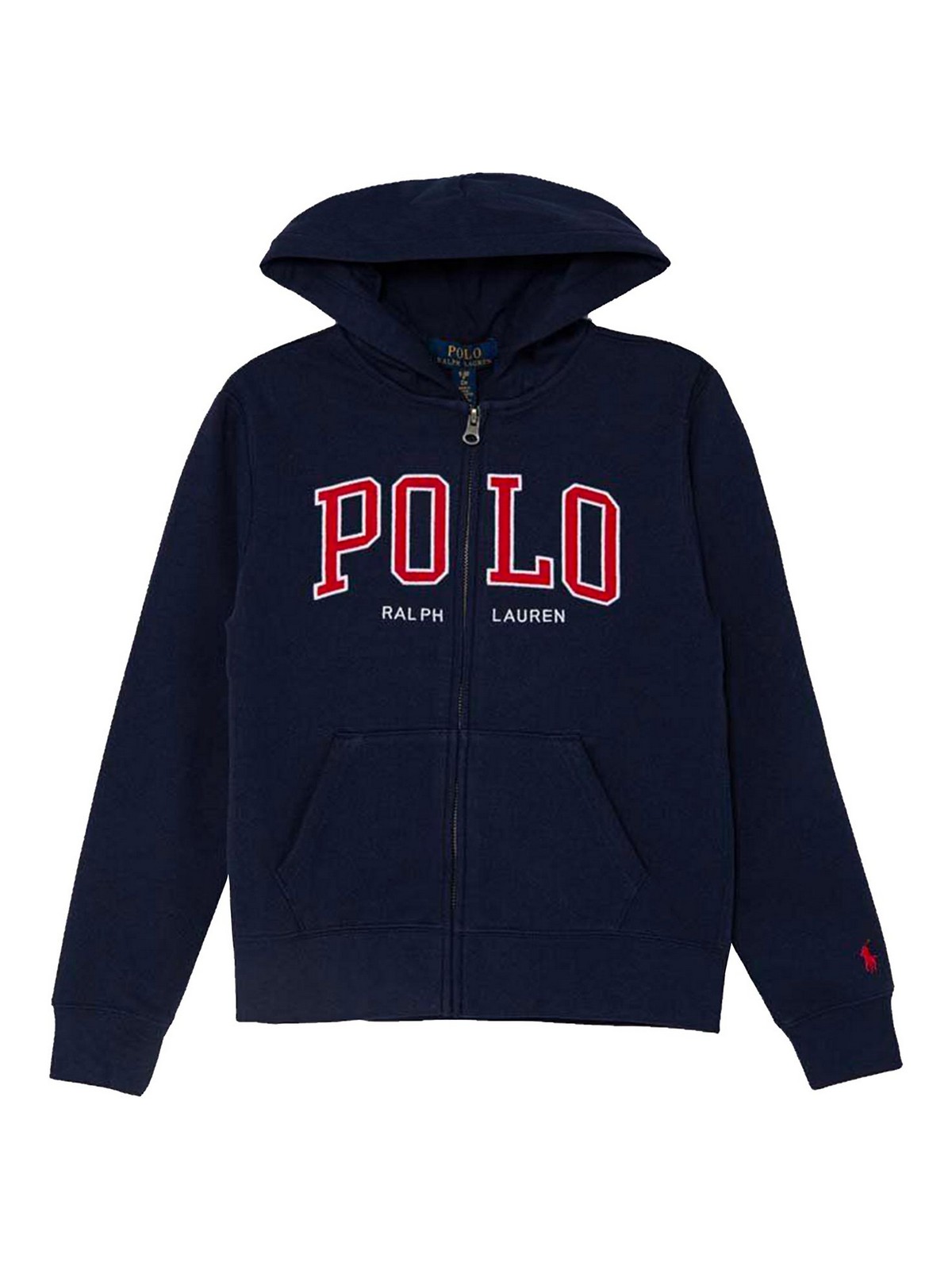 Blue sweatshirt from polo ralph lauren featuring hood ribbed and cuffs hem frontal logo and kangaroo pocket