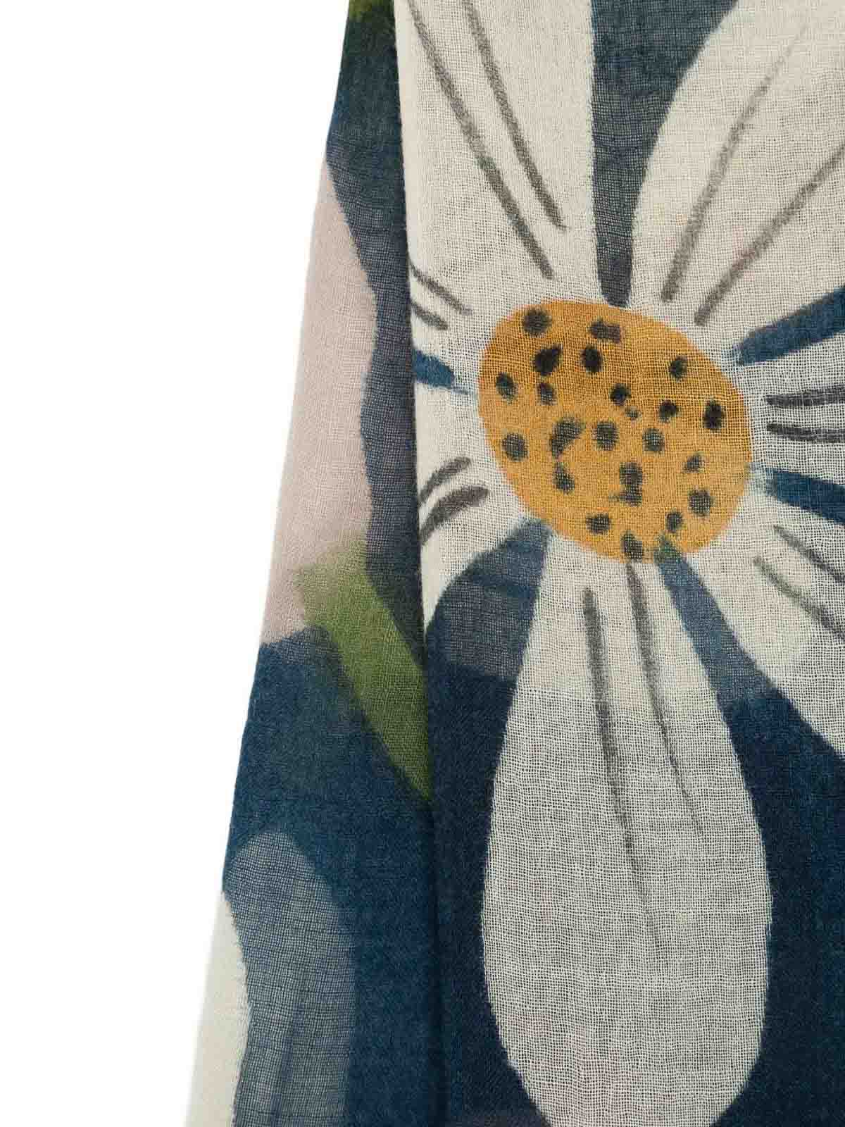 Blue scarf from sgombero cantine featuring an all-over daisy print a soft and playful accessory perfect for adding a touch of personality to everyday outfits