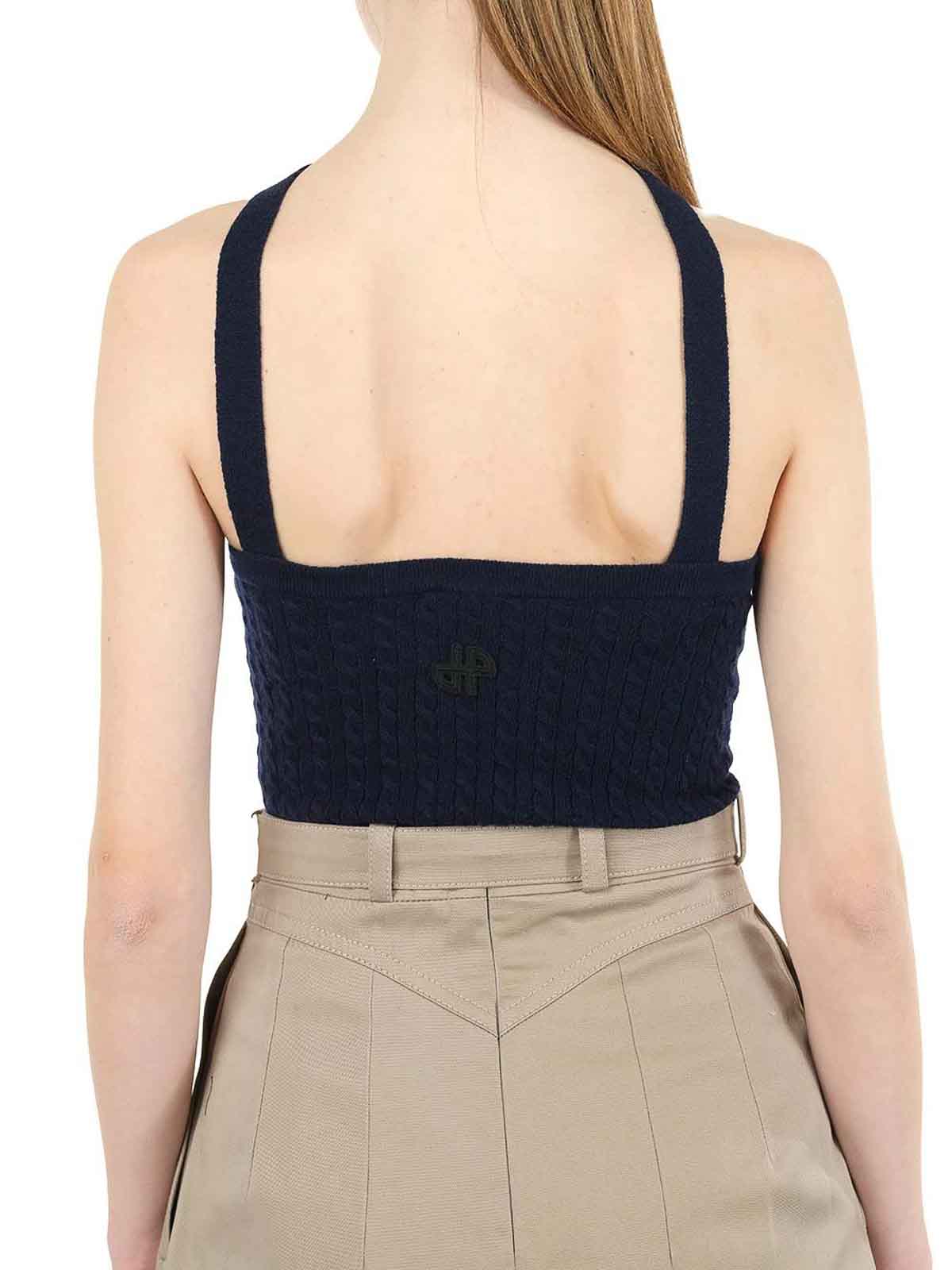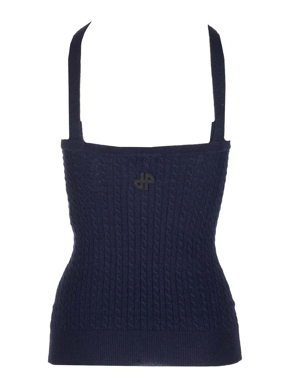 Blue wool sleeveless fitted top by patou with spaghetti straps.