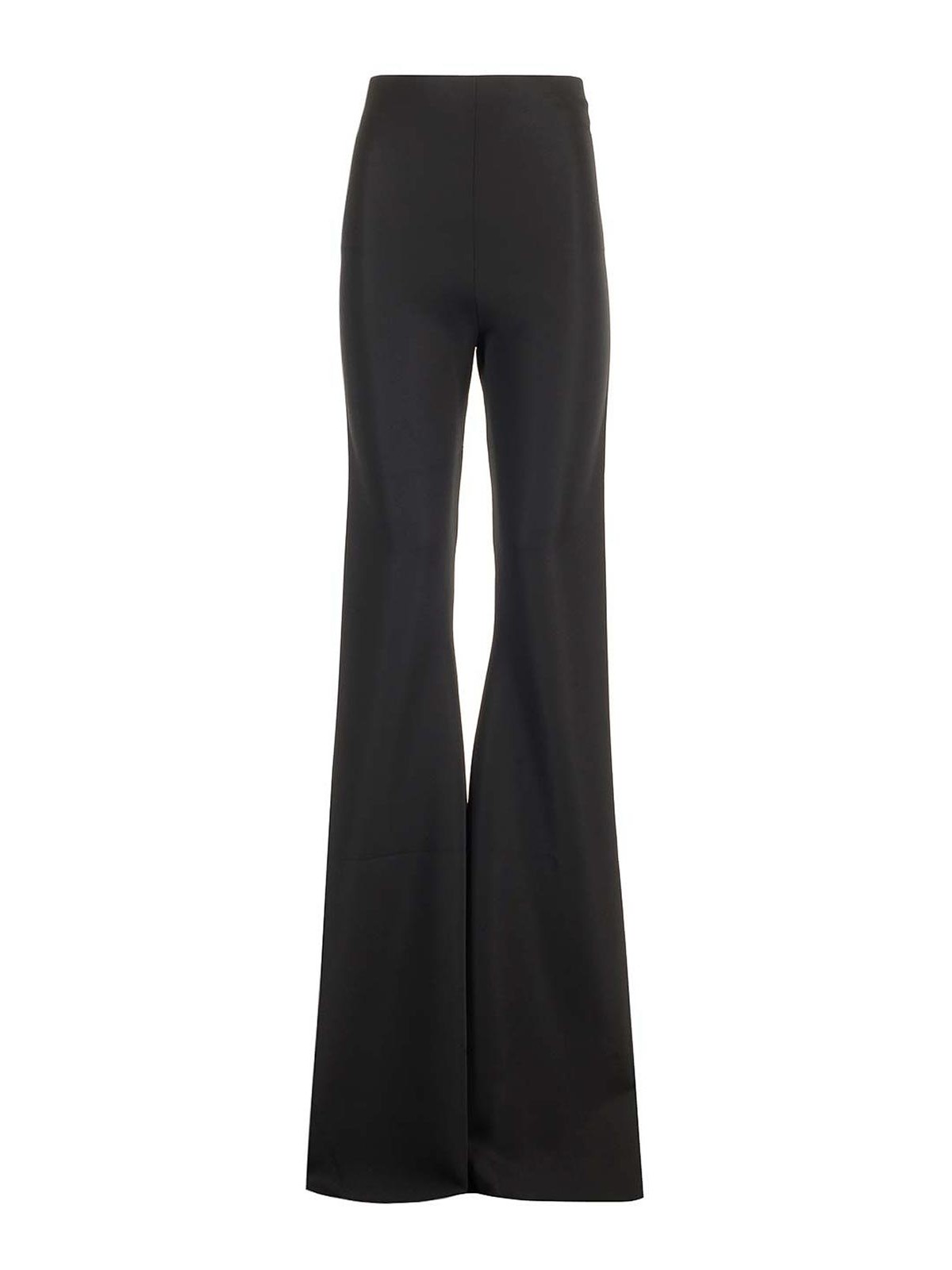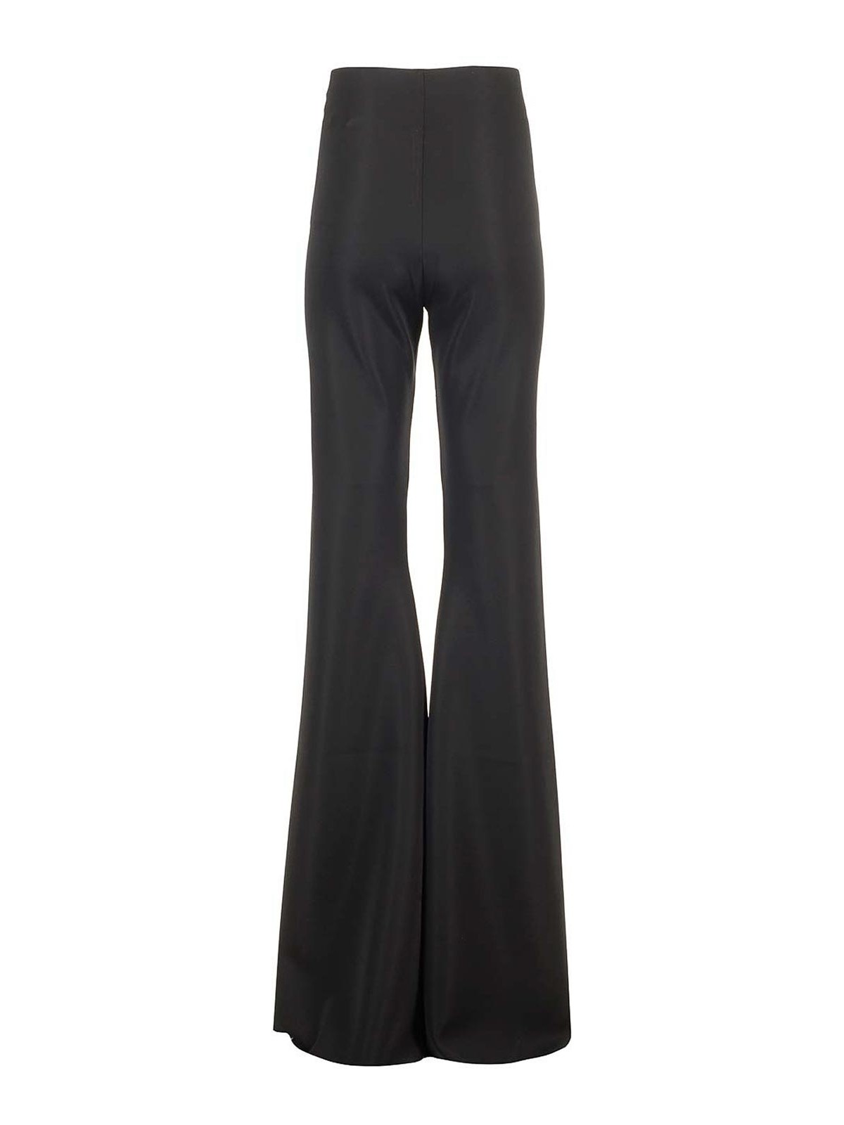 bolan trousers in black compact jersey from rickowenslilies with high waist and extra long flared leg.