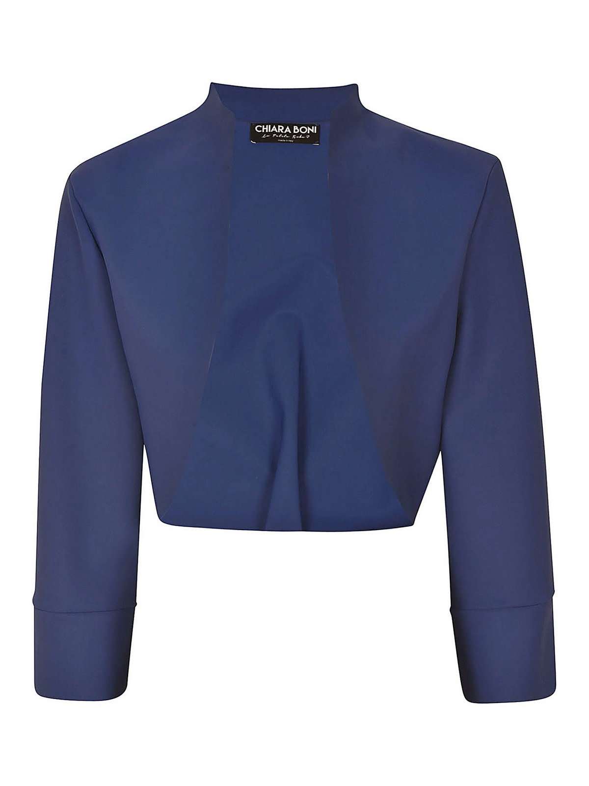 Unlined bolero in stretch jersey col rich blue Tri-quarter hem sleeve