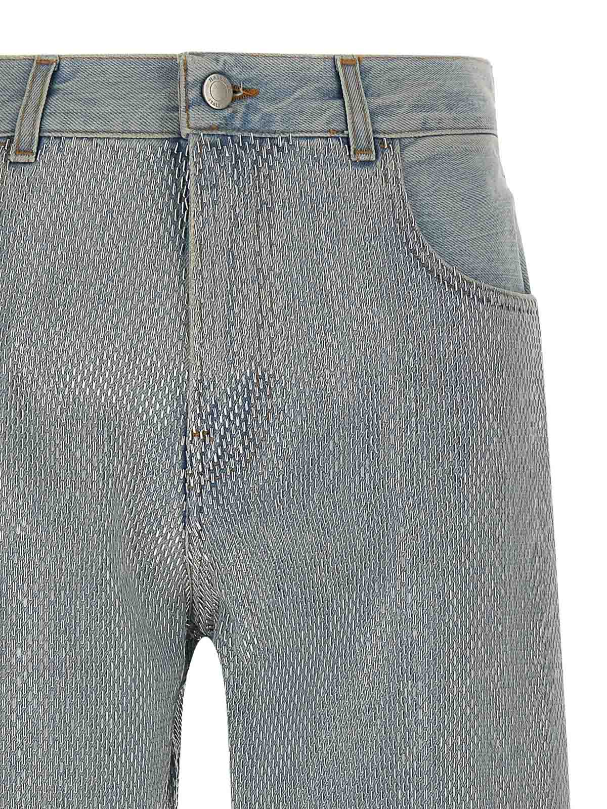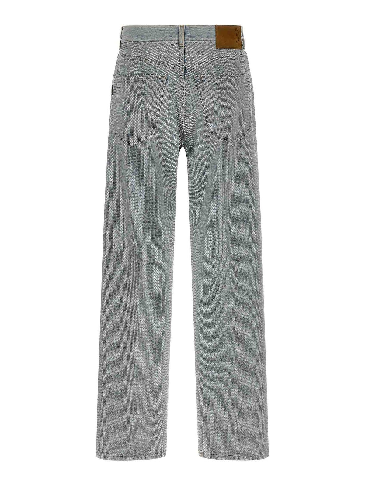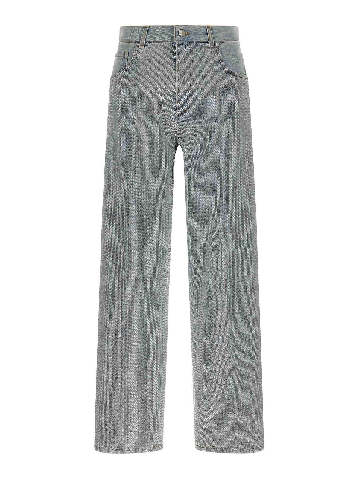 bonnie' cotton denim jeans with all-over baguette studs, contrast stitching, front zip and button closure, five pockets, wide straight leg, back suede logo tag.
