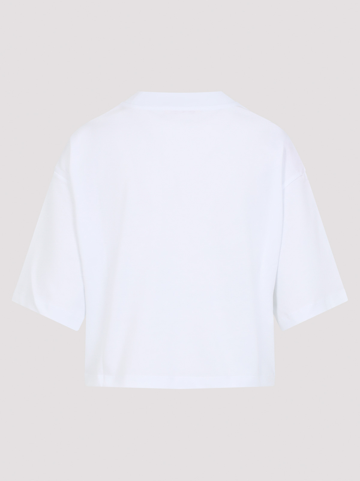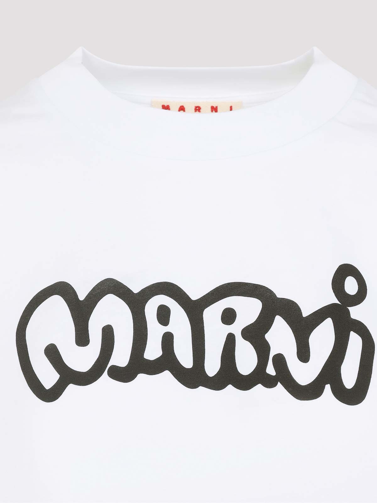 Marni lily white boxy crop T-shirt pure lily, white T-shirt round neck contrasting black lettering logo dropped shoulders short sleeves cropped design straight hem