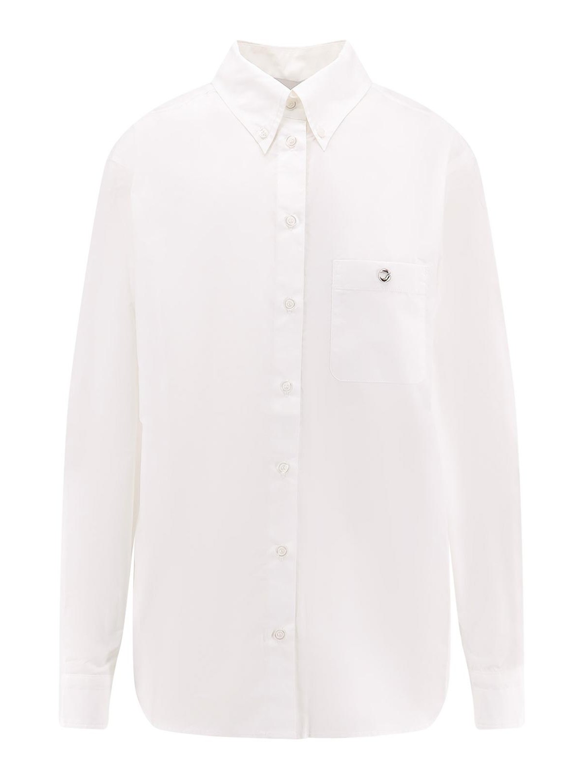 Button closure classic pointed collar long sleeves with cuff and buttons chest pocket with metal logo detail 100% cotton