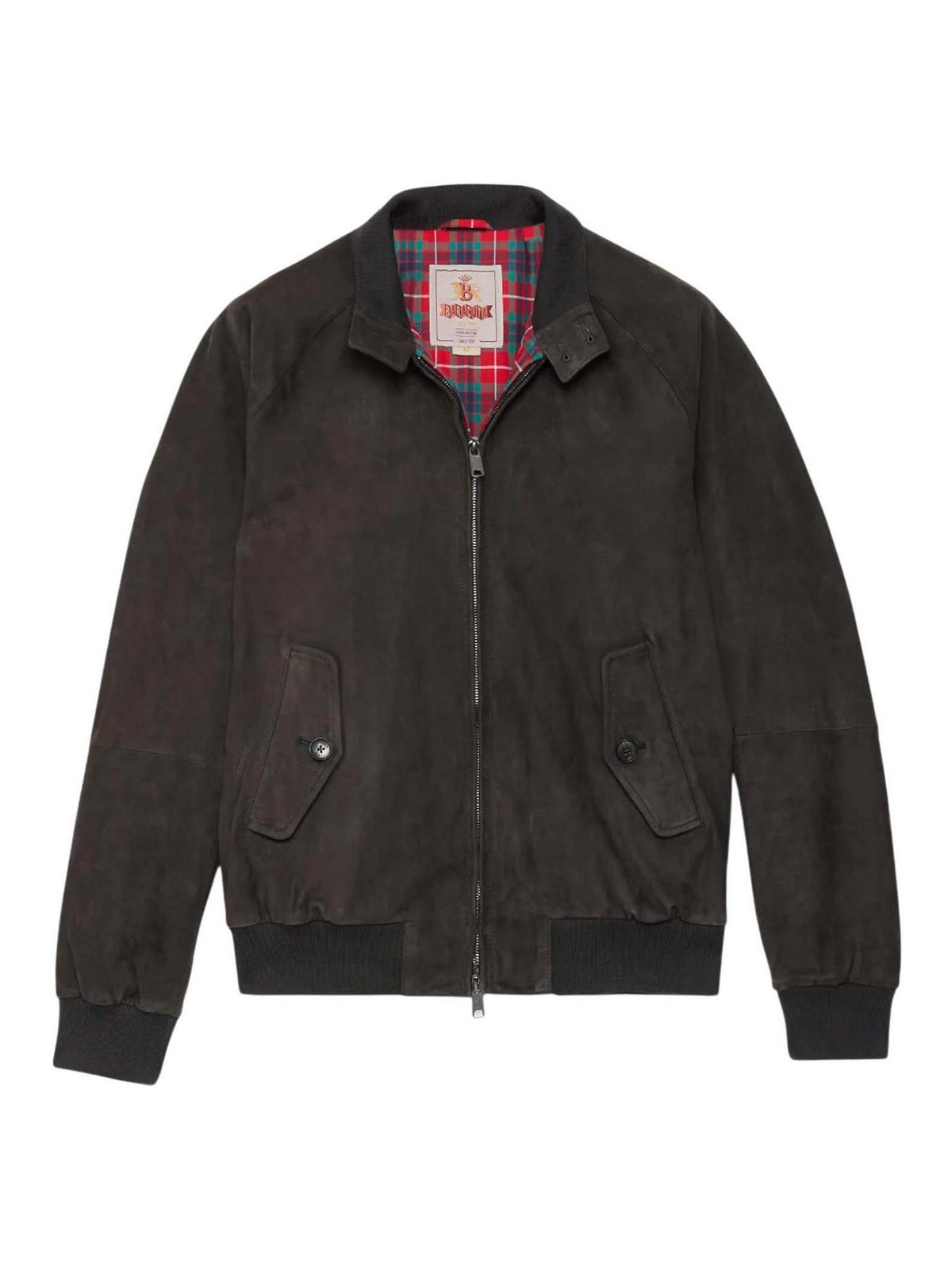 Baracuta G9 Suede Brown Authentic Fit The G9 Suede Authentic Fit jacket is the pure suede reinterpretation of the iconic Harrington Baracuta. a garment that has become a staple of the wardrobe over time thanks to its versatility and timeless design, today recognized as an authentic style icon. Made of goatskin, it has a refined and natural structure, combined with the historic Fraser tartan lining in breathable Coolmax fabric. the iconic details of the g9 model, such as the shoulder pad with umbrella motif, the two-button collar and the raglan sleeves, guarantee comfort, protection and freedom of movement. shoulder strap with umbrella motif ribbed stand-up collar with double button two-way zip closure with logo raglan sleeves for comfort and freedom of movement front pockets with flap and button ribbed cuffs, waist and inside collar pressor tartan lining in breathable coolmax fabric made of pure suede (goatskin), composition, outer fabric: 100% goatskin main lining: 100% cotton secondary lining: 100% polyester, garment care, do not wash in water do not bleach do not tumble dry do not iron dry clean with trichlorethylene, limiting water, mechanical action and temperature