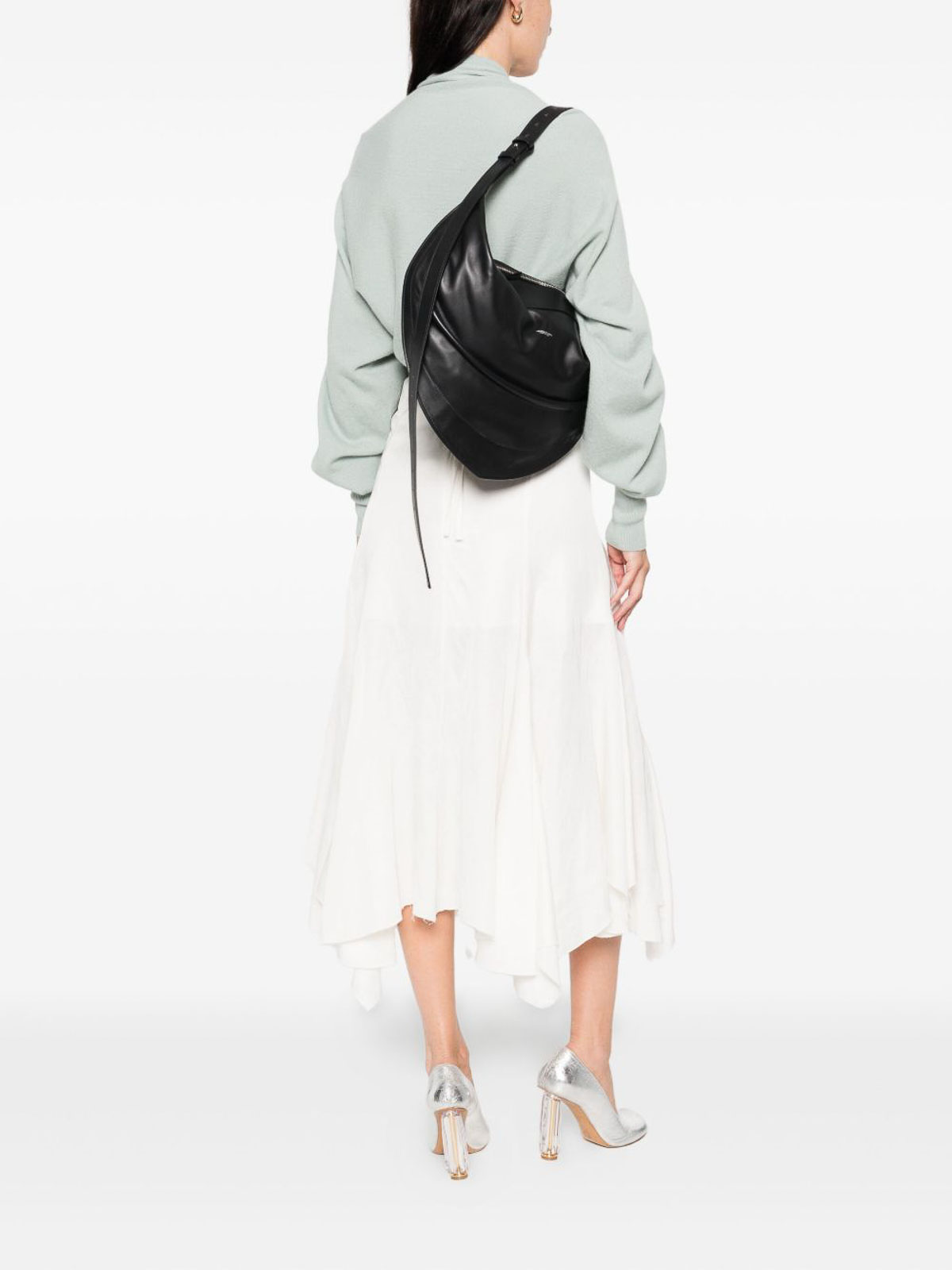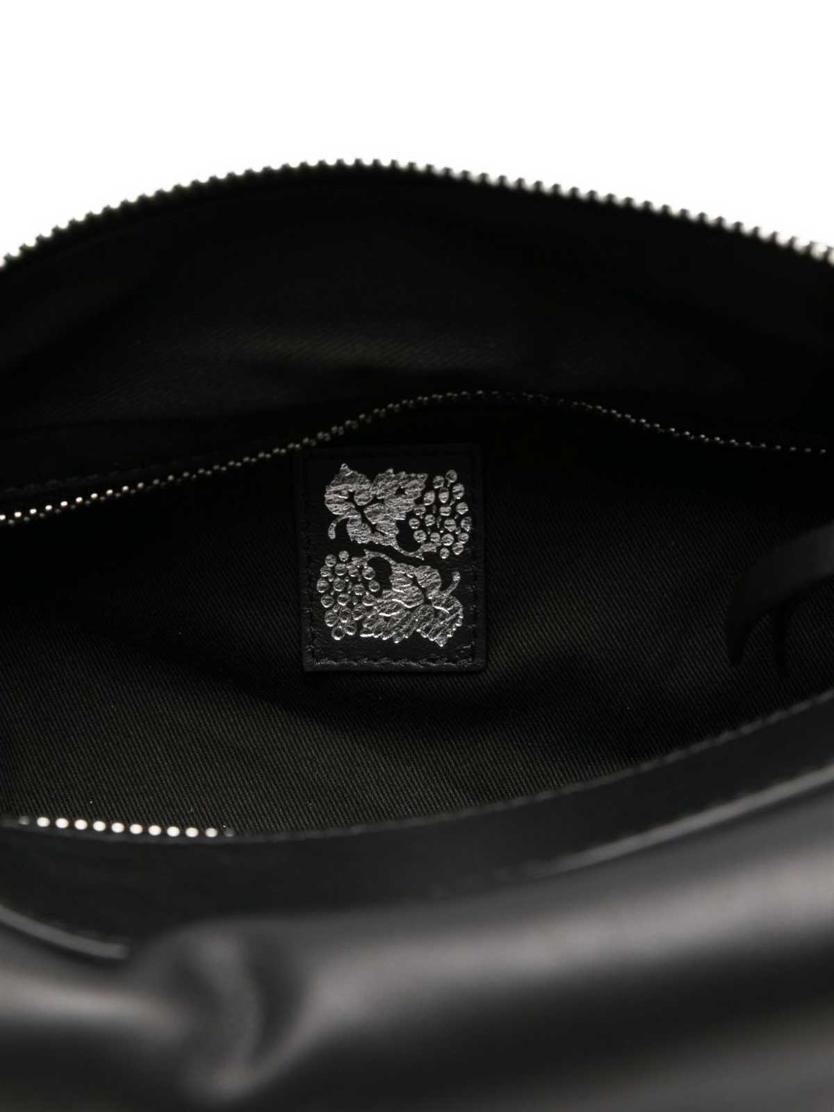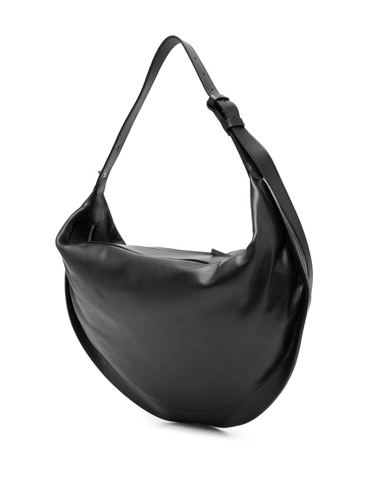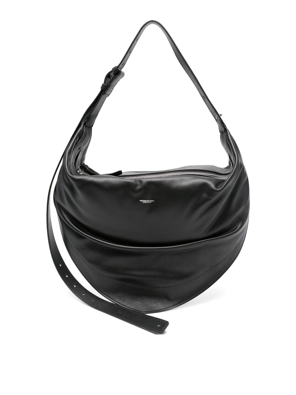 Federico cina's iconic 'tortellino' shoulder bag, presented in elegant black with a curved silhouette inspired by emilian culinary tradition, features a zip closure, adjustable strap, and interior finished with a logo print for a distinctive touch, federico cina, tortellino shoulder bag, black, curved shape, zip closure, adjustable strap, interior logo print, contemporary and original design