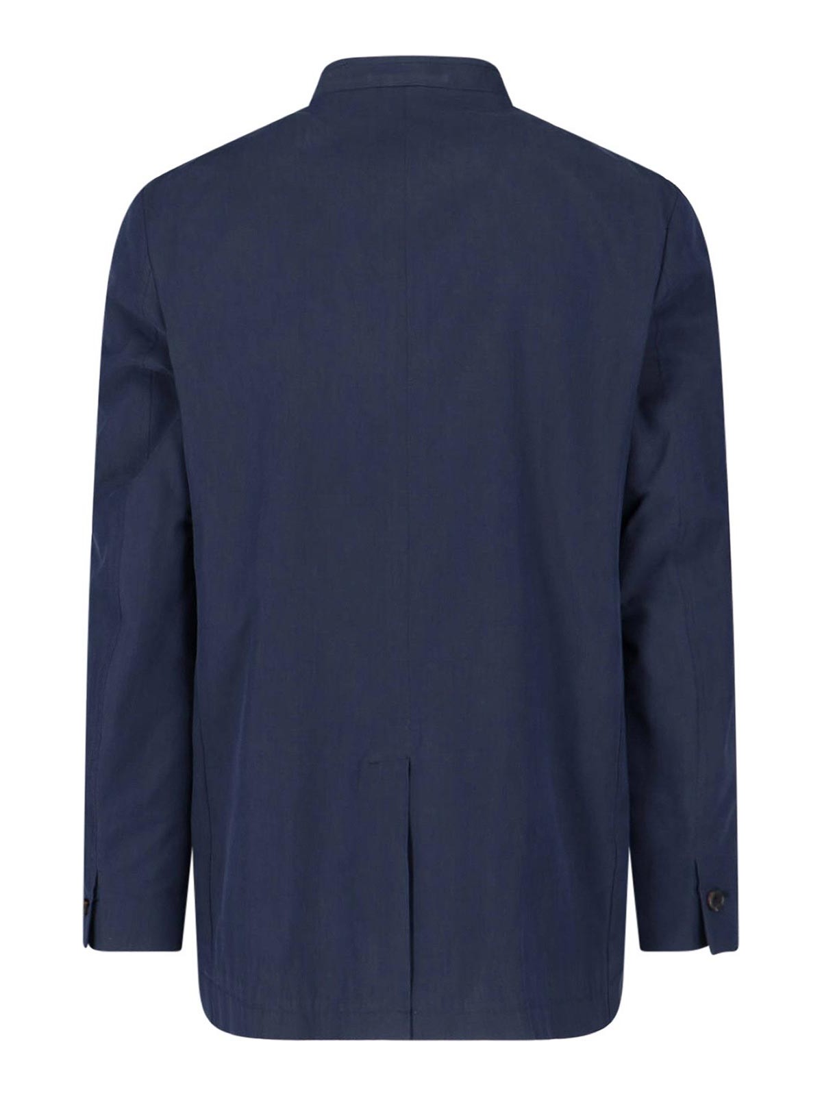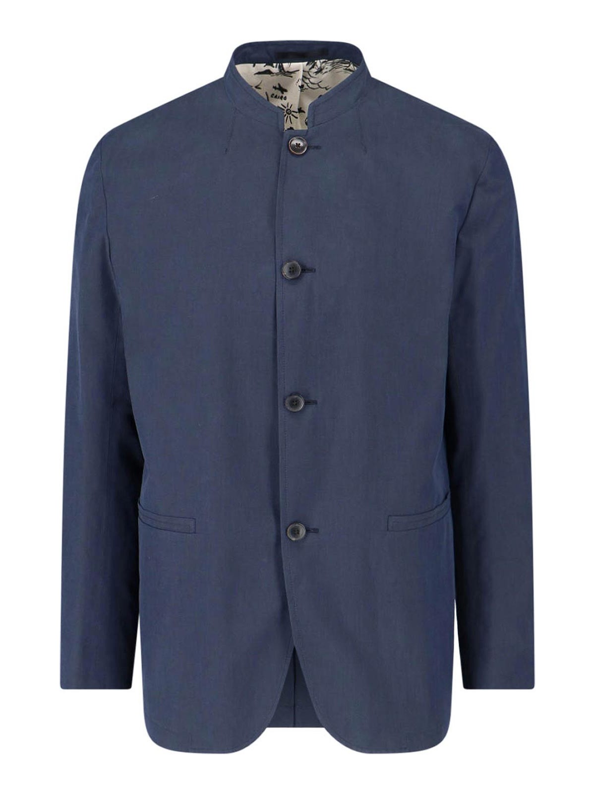 Paul Smith button jacket in blue cotton and lyocell blend, navy tone, stand-up collar, long sleeves, two side pockets.