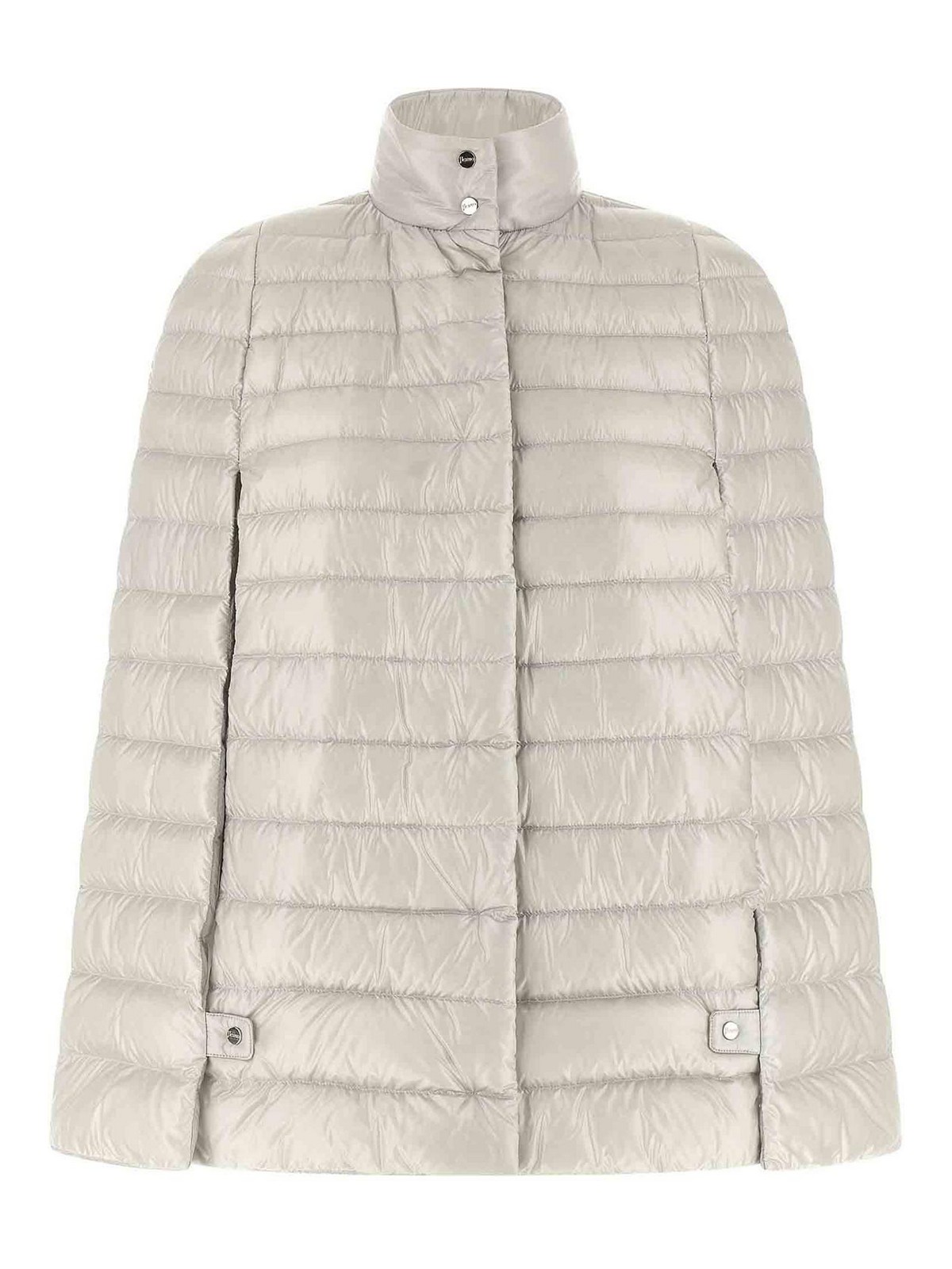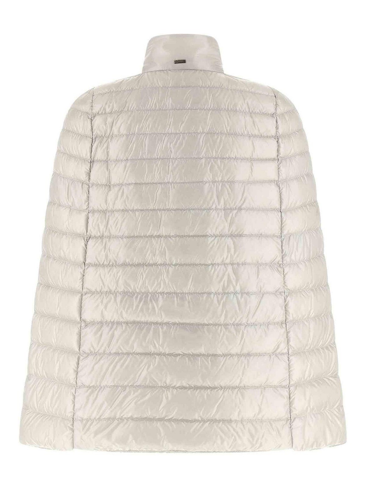Ultralight nylon cape down jacket, goose down padding and quilted, vertical front slits for the arms with logo automatic and front closure with automatics.