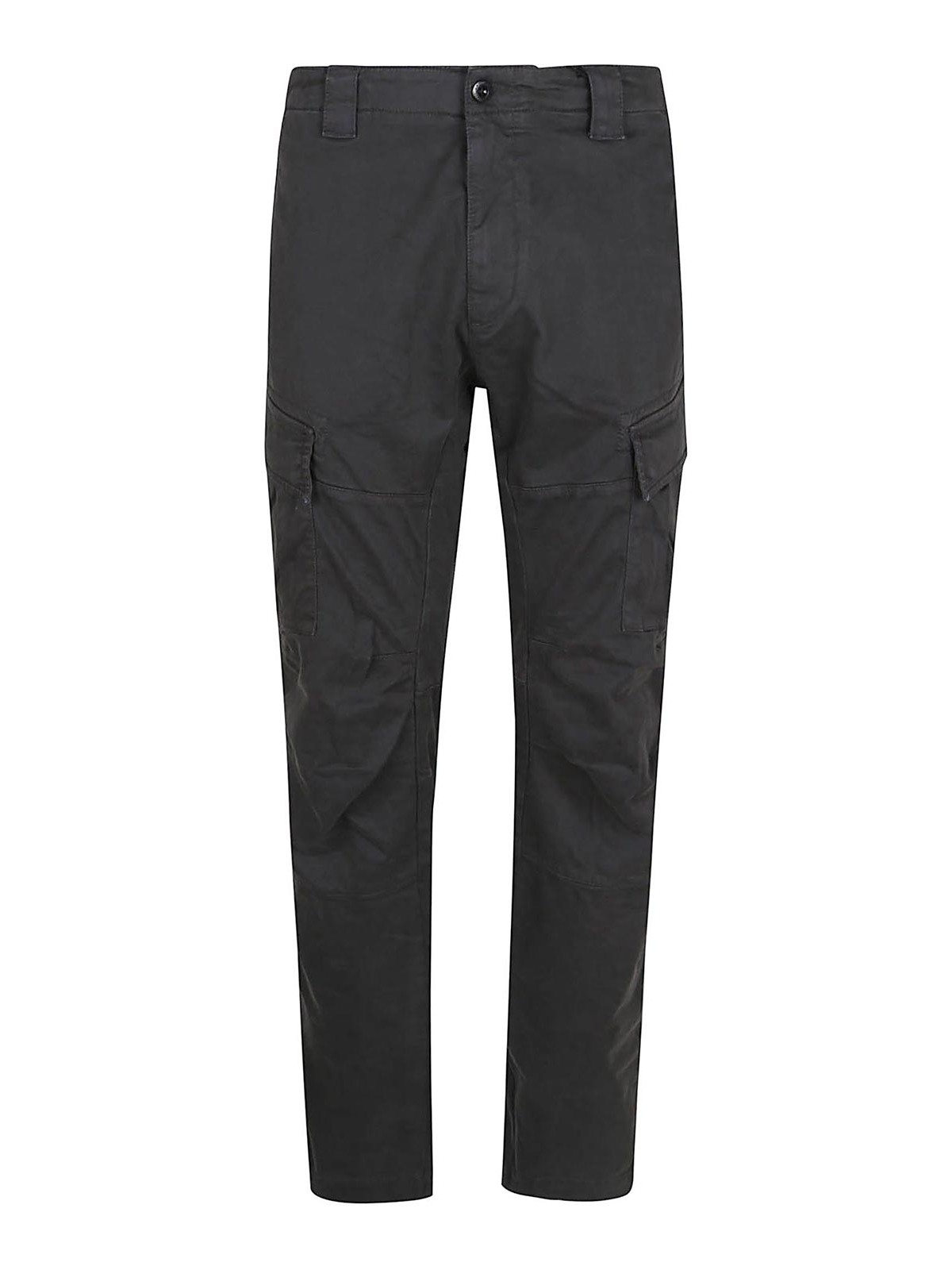 Cotton satin cargo trousers by CP Company. Button and zip closure