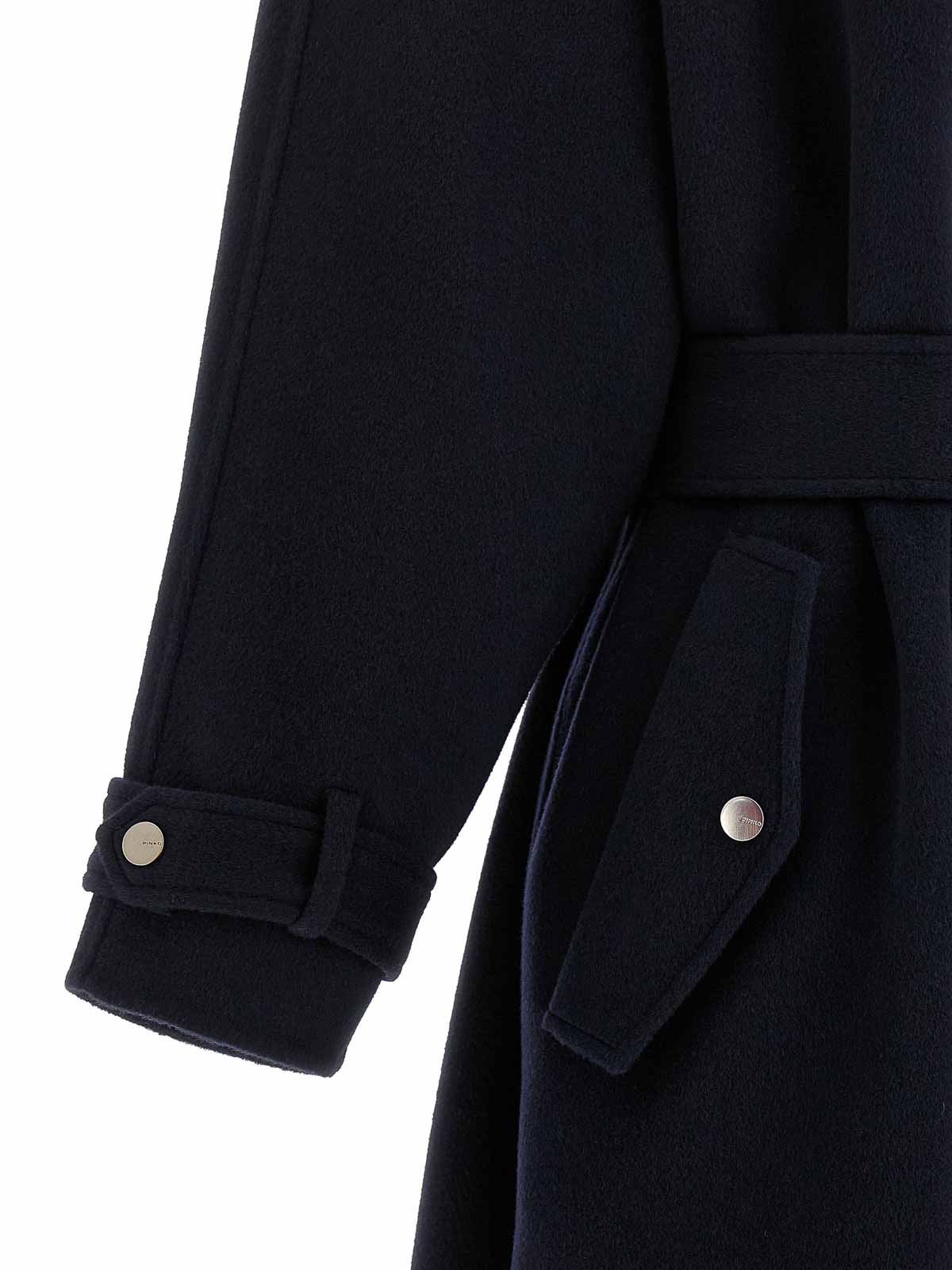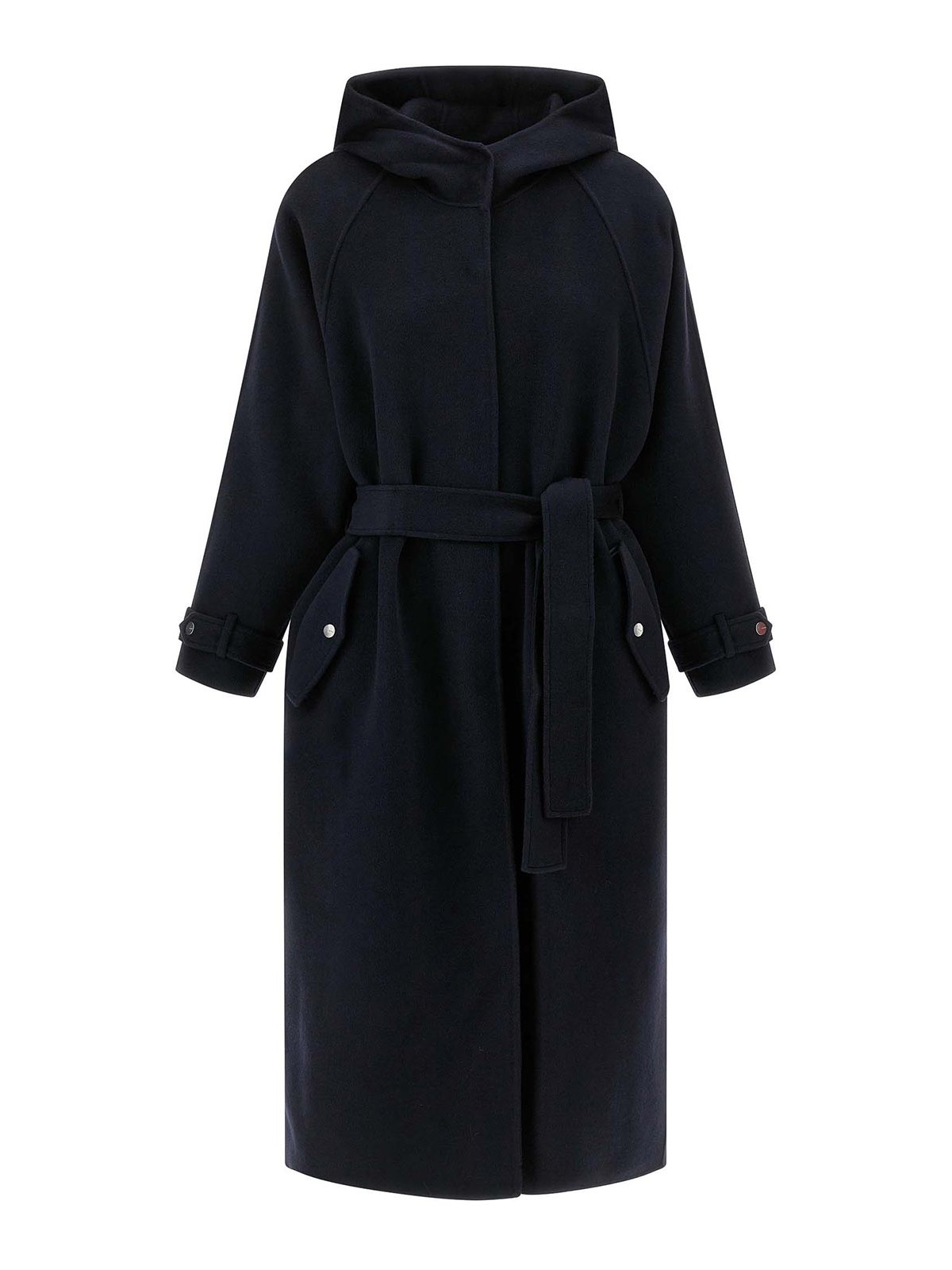 cartoccio' wool cloth coat, hood, front snap button closure, pockets, long wide sleeves with cuffs, unlined, removable belt.