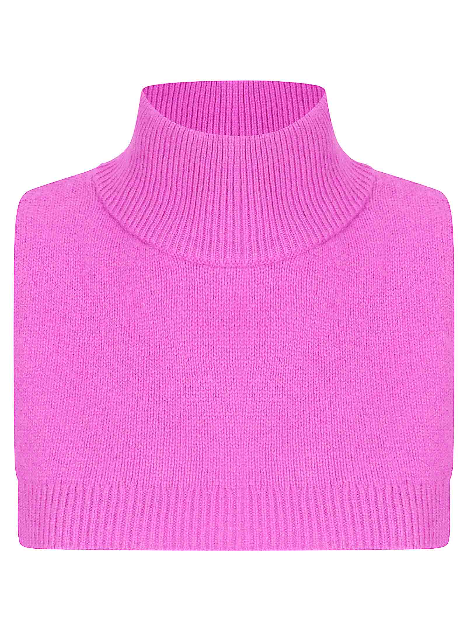 Cashmere neck warmer with high collar, open at the sides, which softly wraps the chest and back.