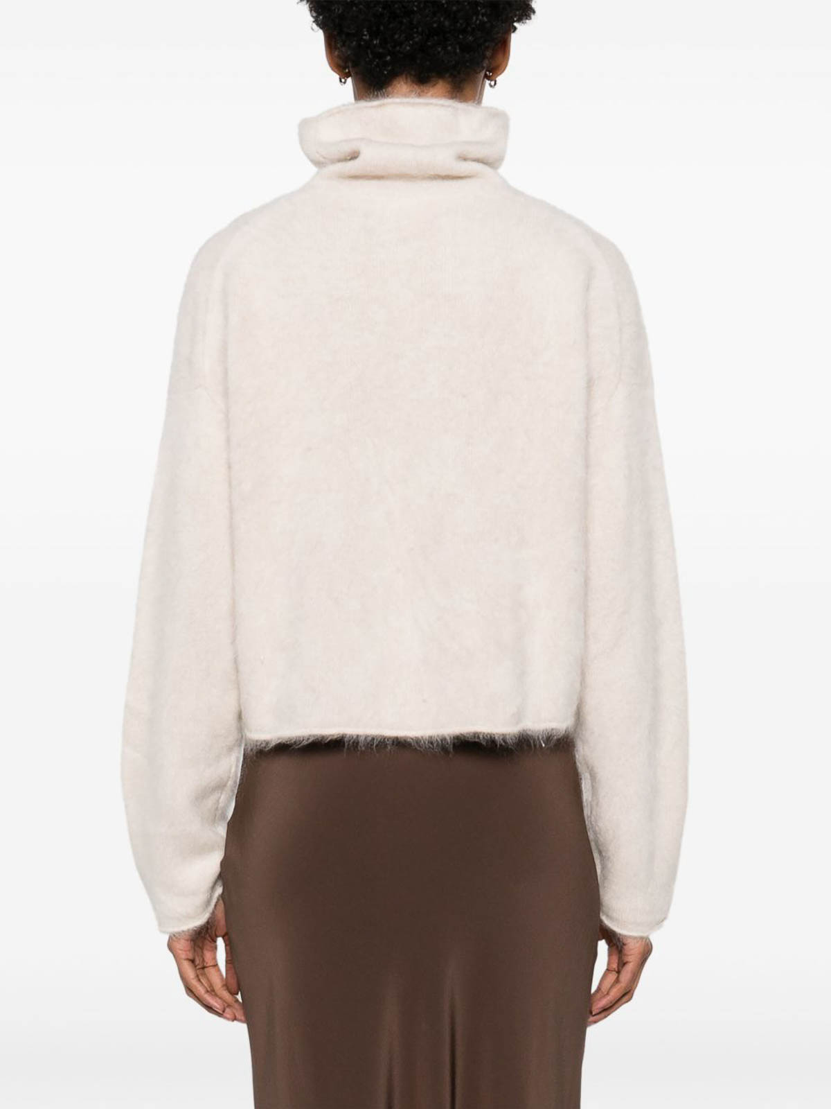 Light beige high neck drop shoulder long sleeves