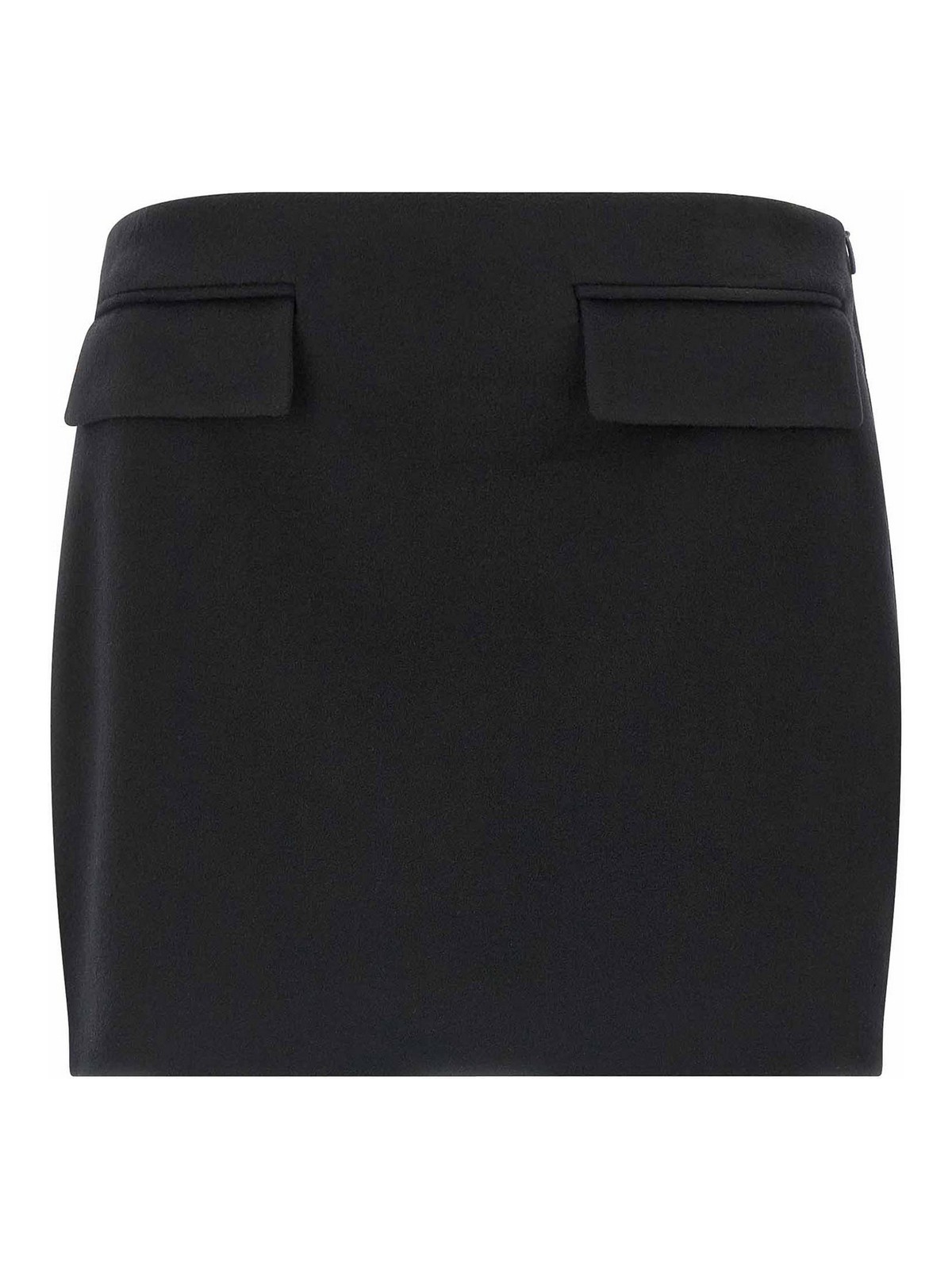 Wool and cashmere mini skirt, pins, pockets, side zip closure, viscose lining.