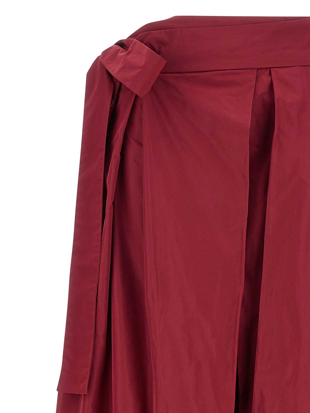 cavallina' long skirt in taffeta with crossover wrap side bow deep split