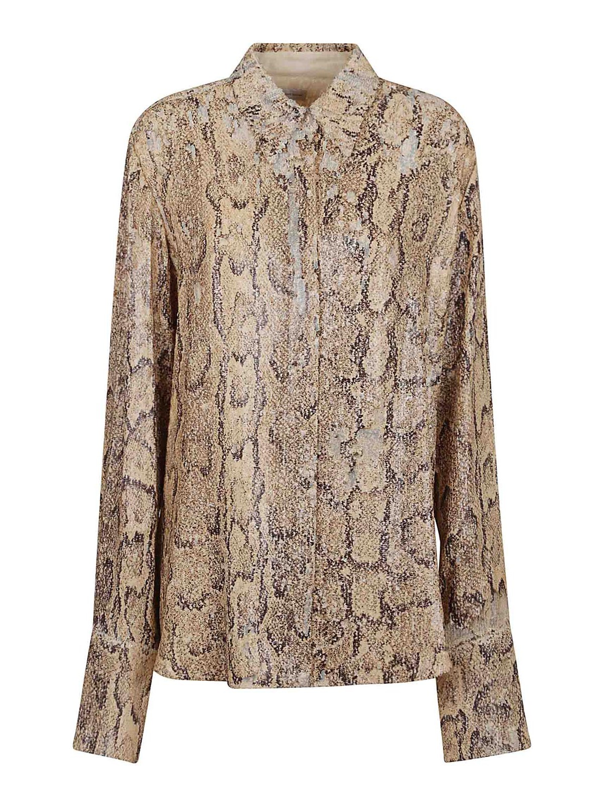 Dries Van Noten Celina cotton shirt with snakeskin print. Pointed collar