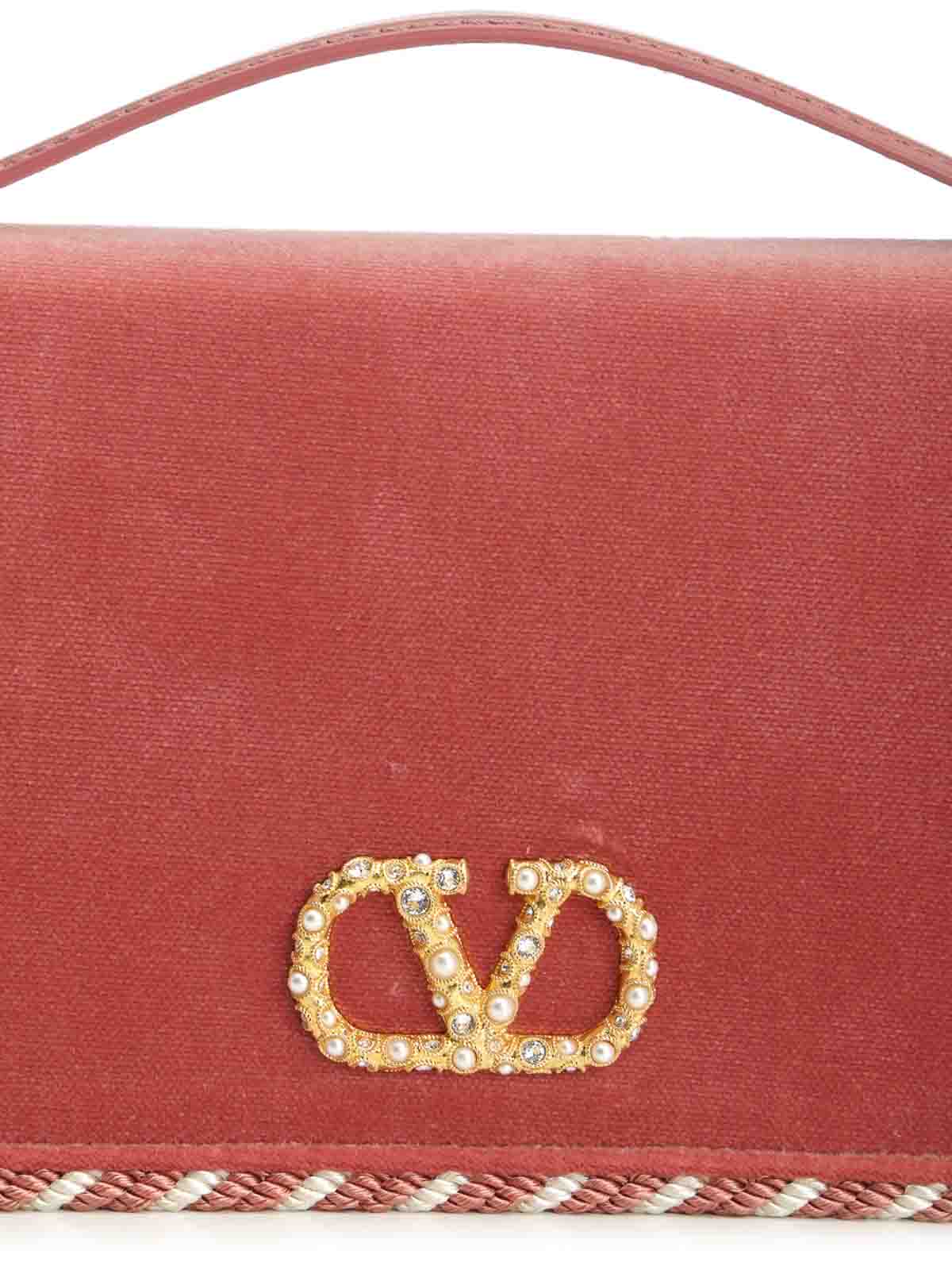Valentino garavani vlogo signature chain wallet with removable chain and antique, finish logo and hardware jewel logo decorated with synthetic pearls and magnetic button moir inside zipped wall pocket and two card slots