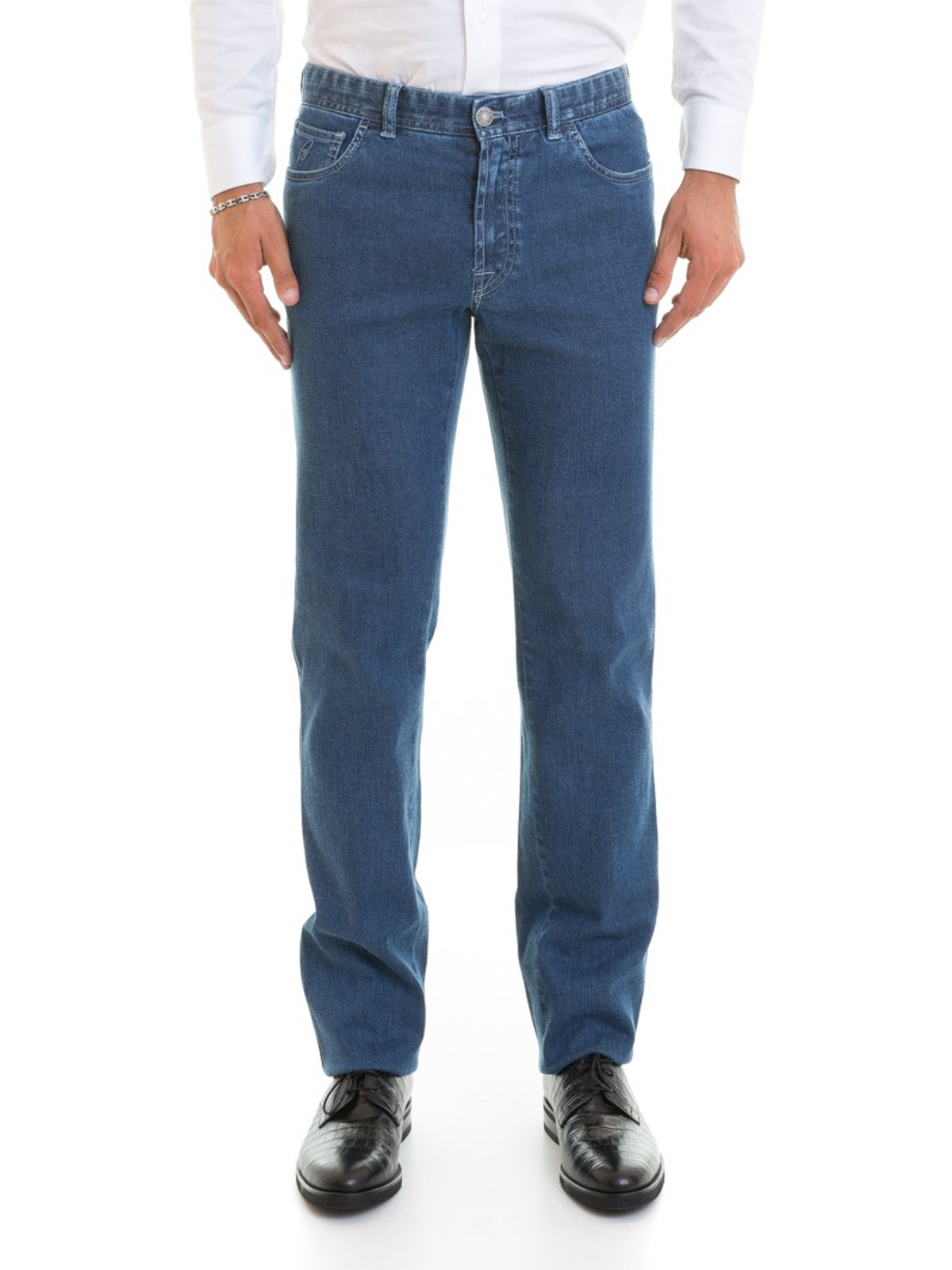 BRIONI: straight leg jeans - Chamonix logo detailed jeans