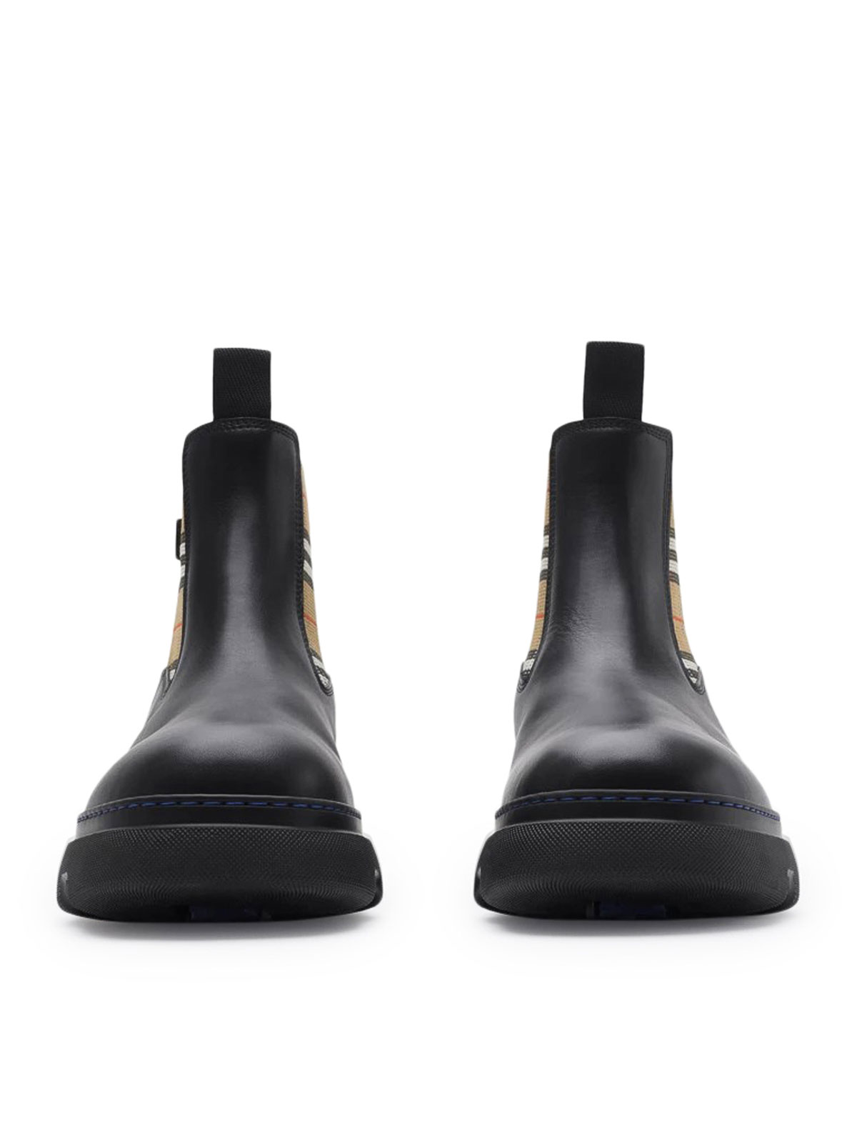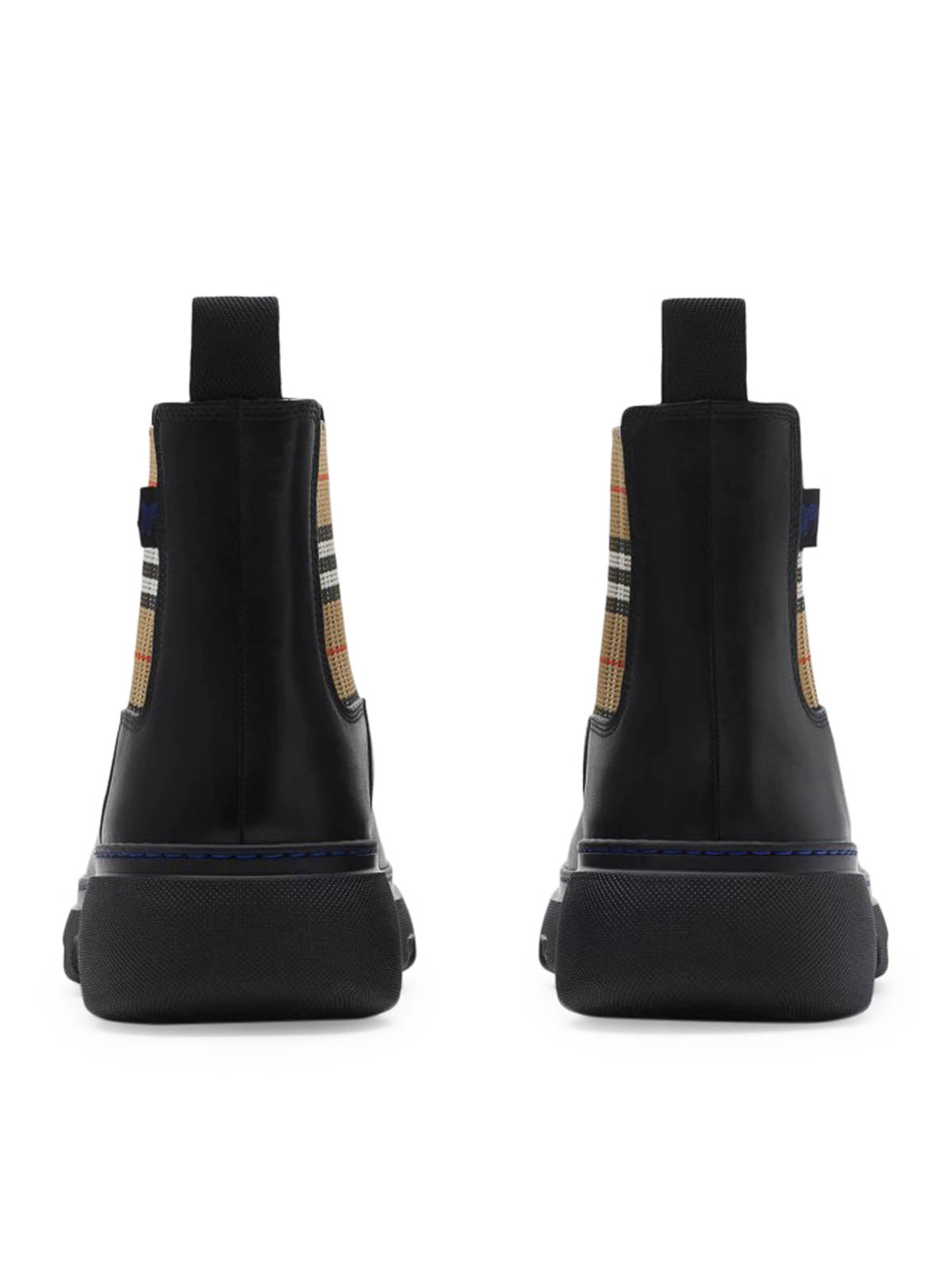 Chelsea boots, - burberry check tongues and, curved chunky s with archive burberry lettering, round toe, comes with a protective case, / black
