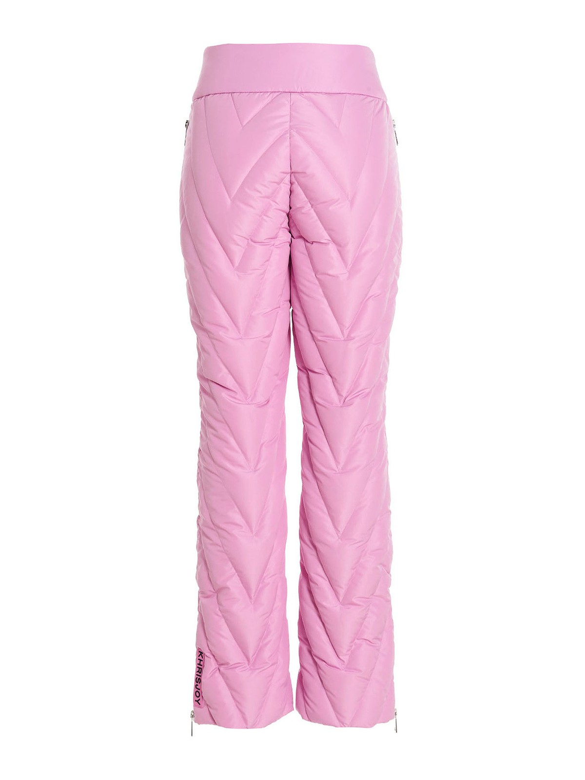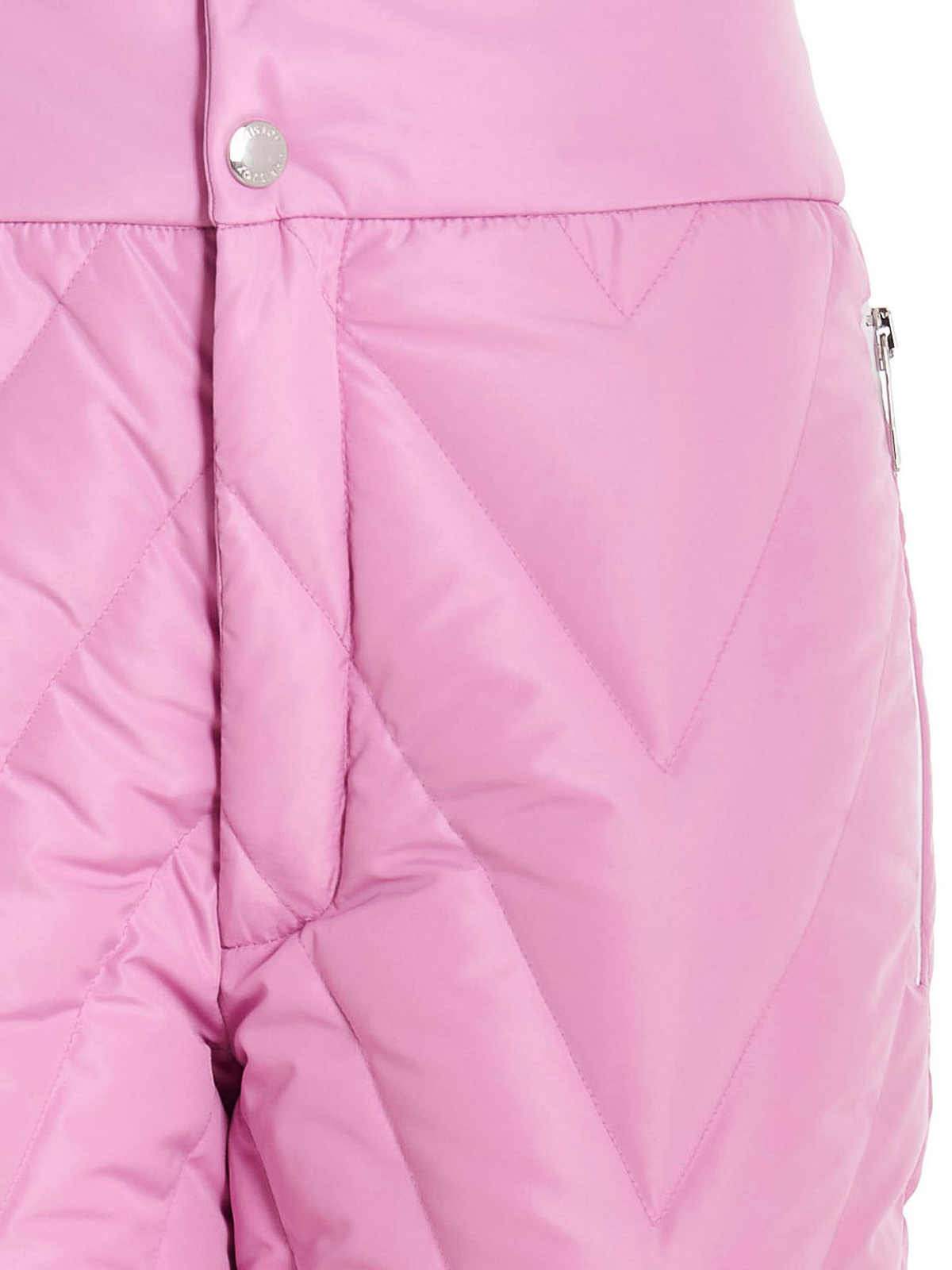 Chevron high waist ski pants crafted in a padded and matelassé fabric with high waist, ankle straps and a zip and button closure.