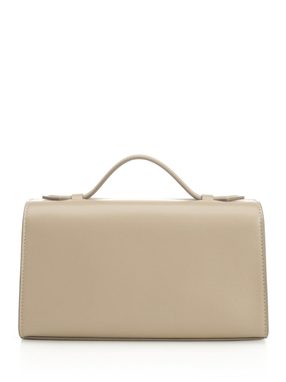 Savette symmetry clutch bag, with symmetry snap closure, an internal pocket and a leather handle.