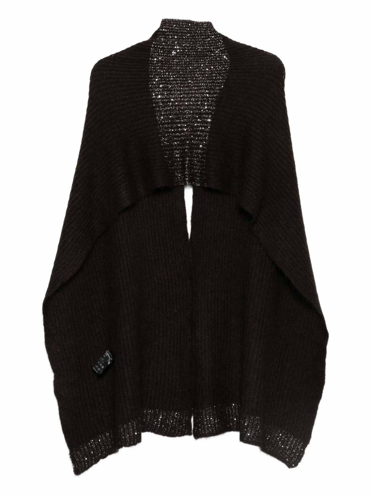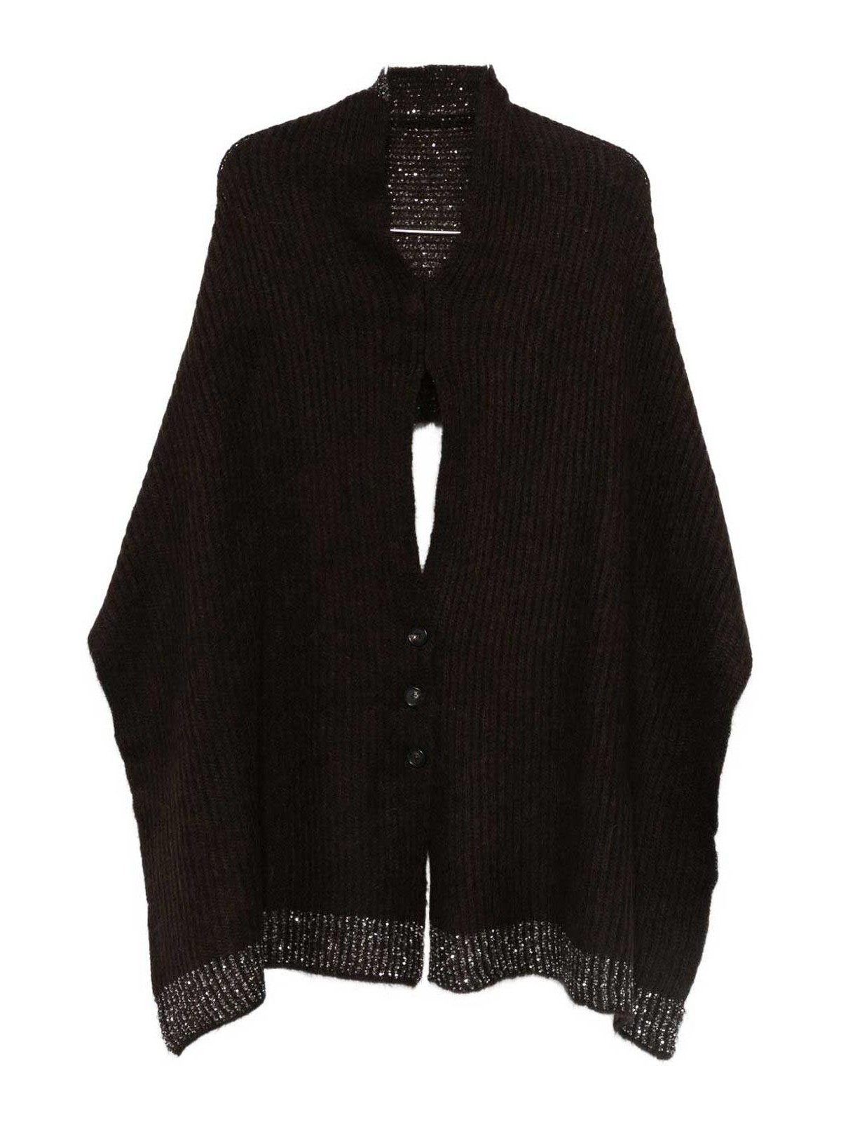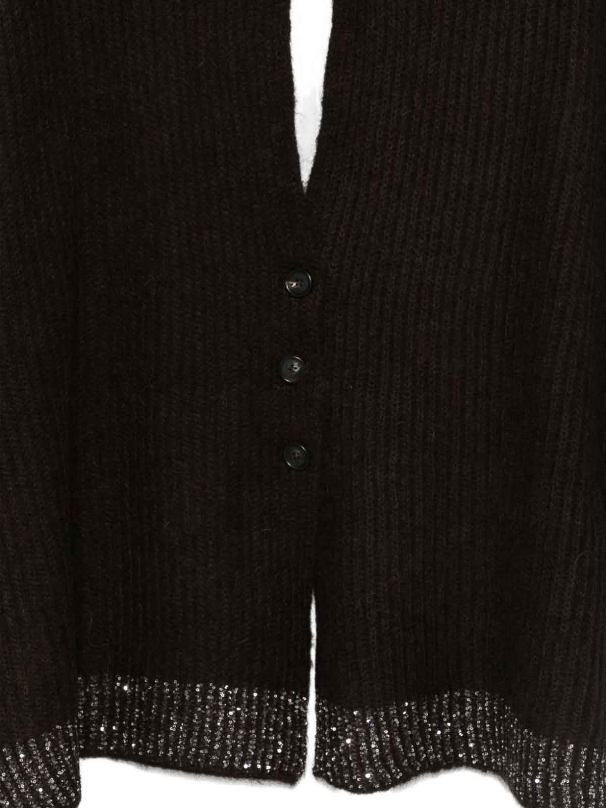 Cedar brown embellished hem button ribbed knit shawl collar long sleeves