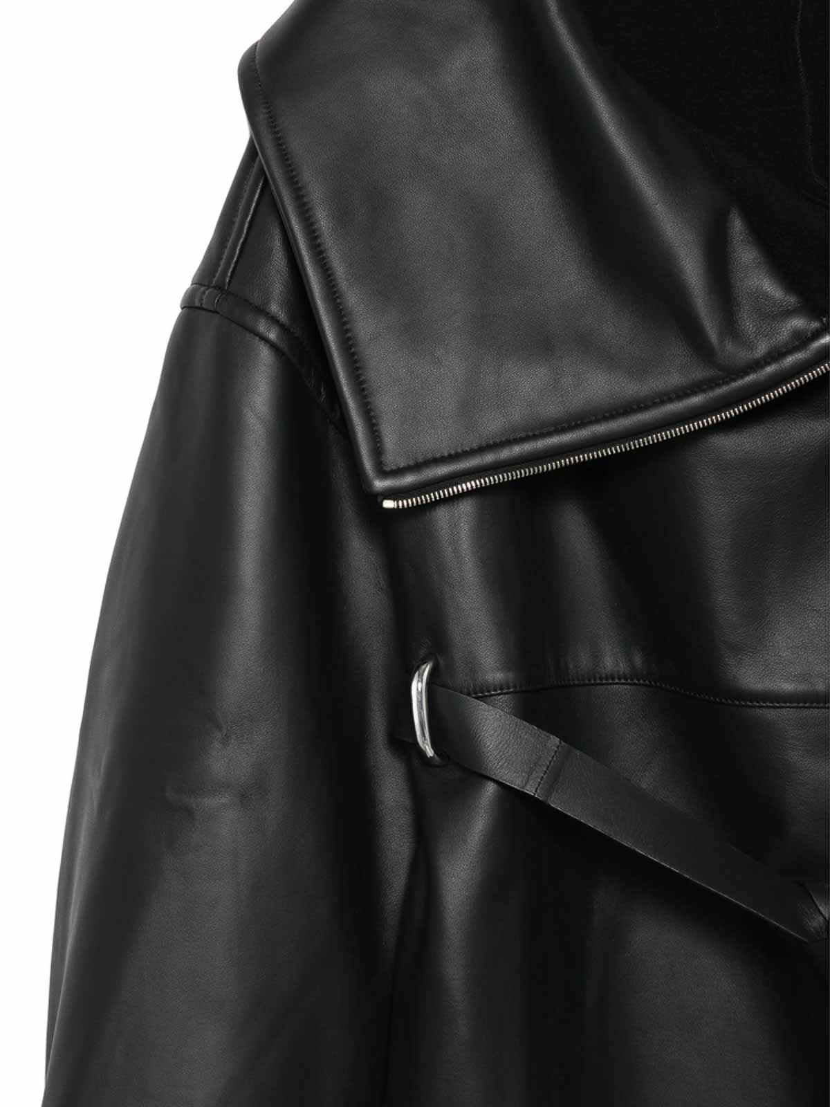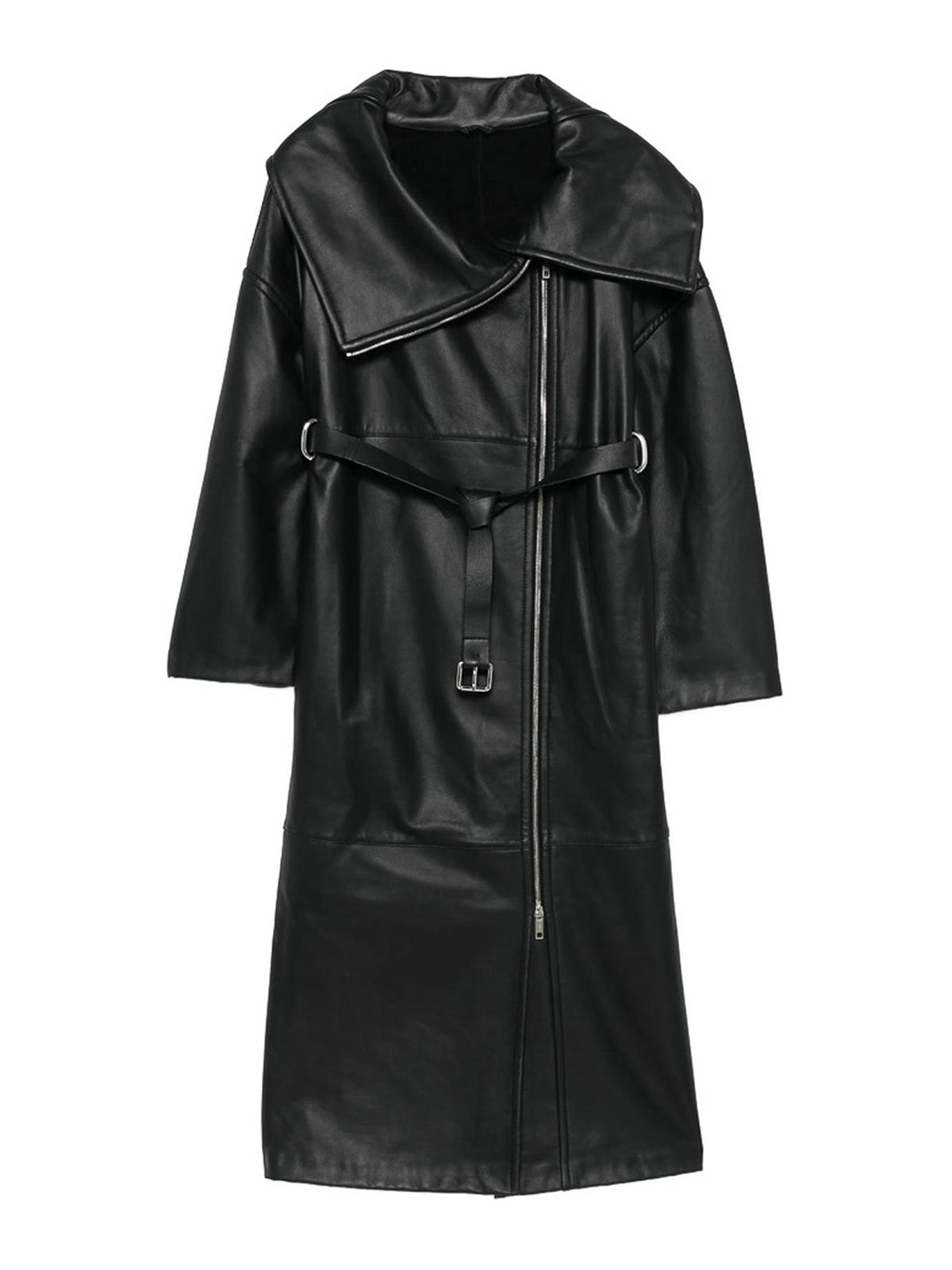 Black detachable belt two, way zip wide collar mid, length, tone hardware