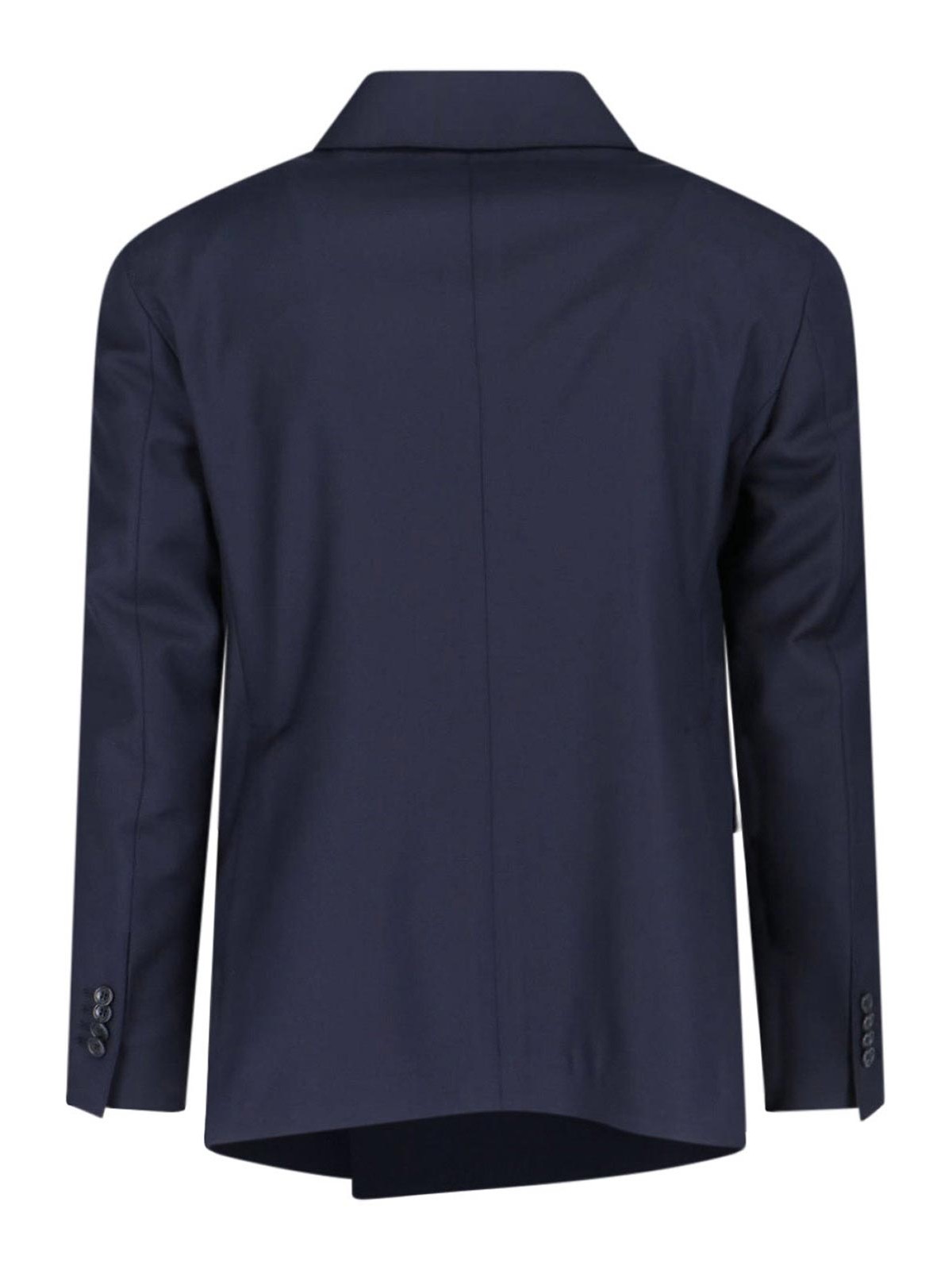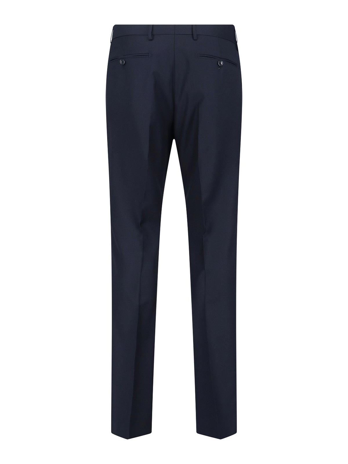 Monte Carlo cutter suit, made exclusively for Sugar, in blue virgin wool, v-neck, peak lapels, double-breasted button closure on the front, two front flap pockets, straight hem, tailored trousers, zip and hook closure, two back welt pockets, straight leg.