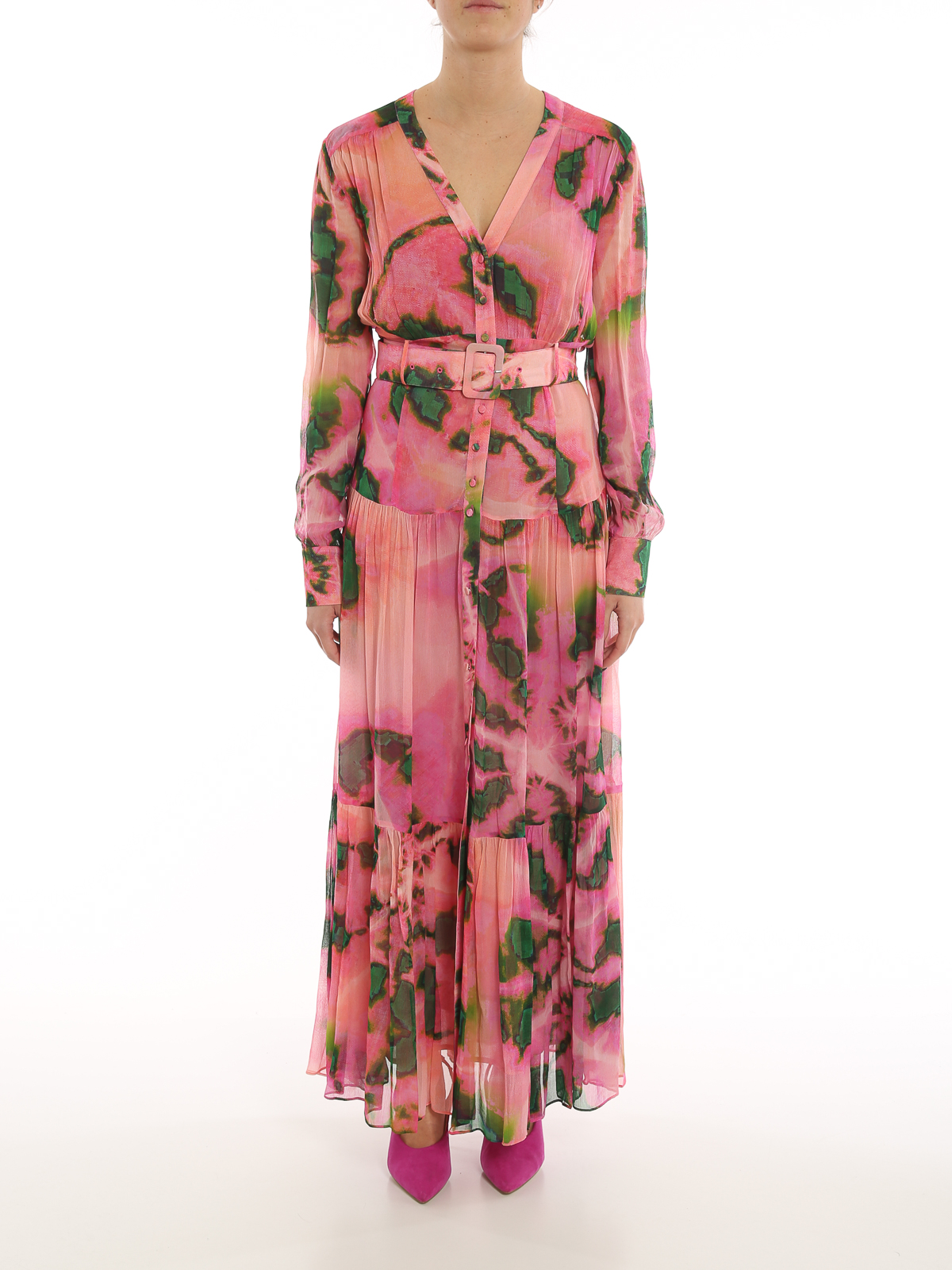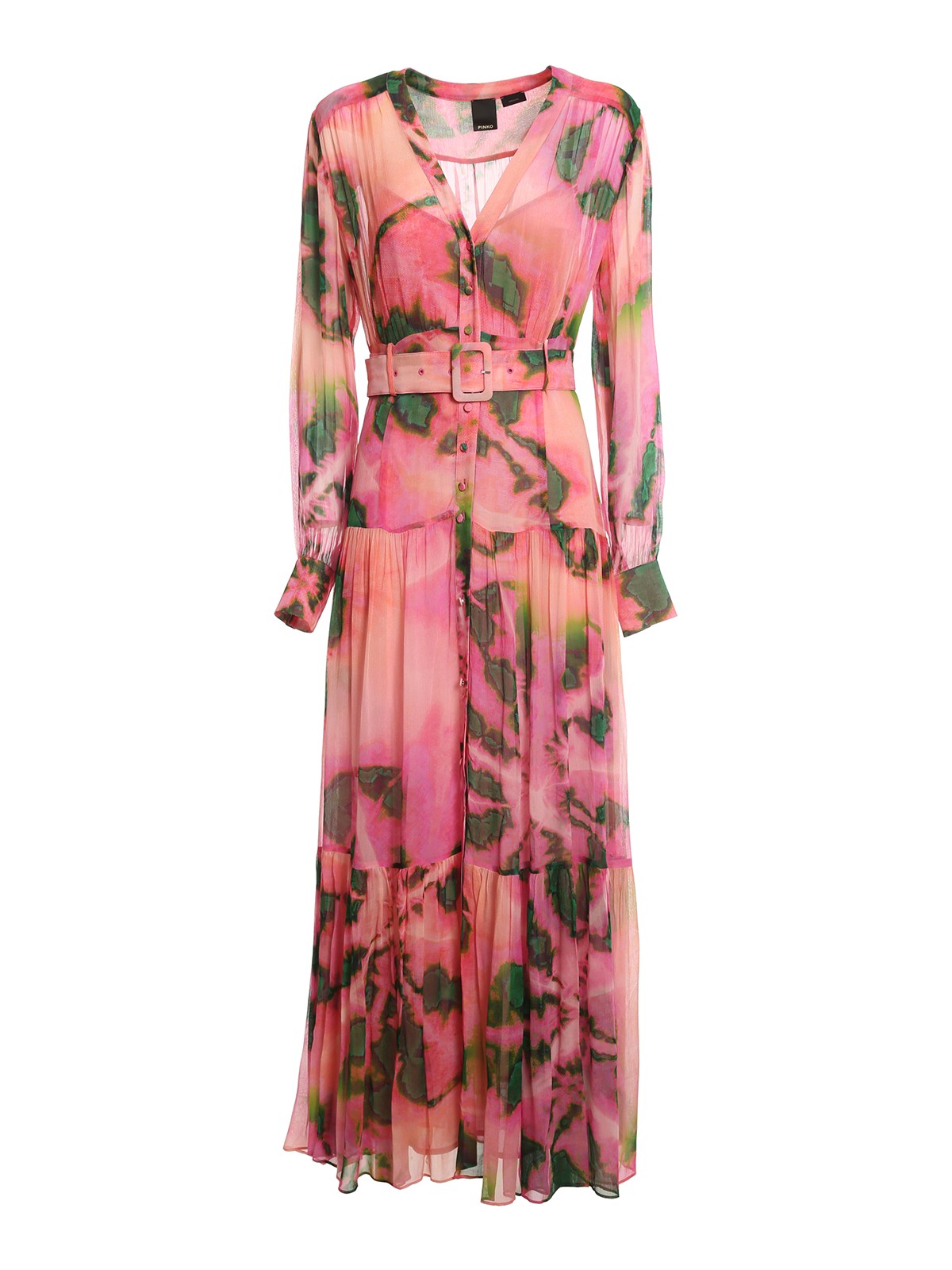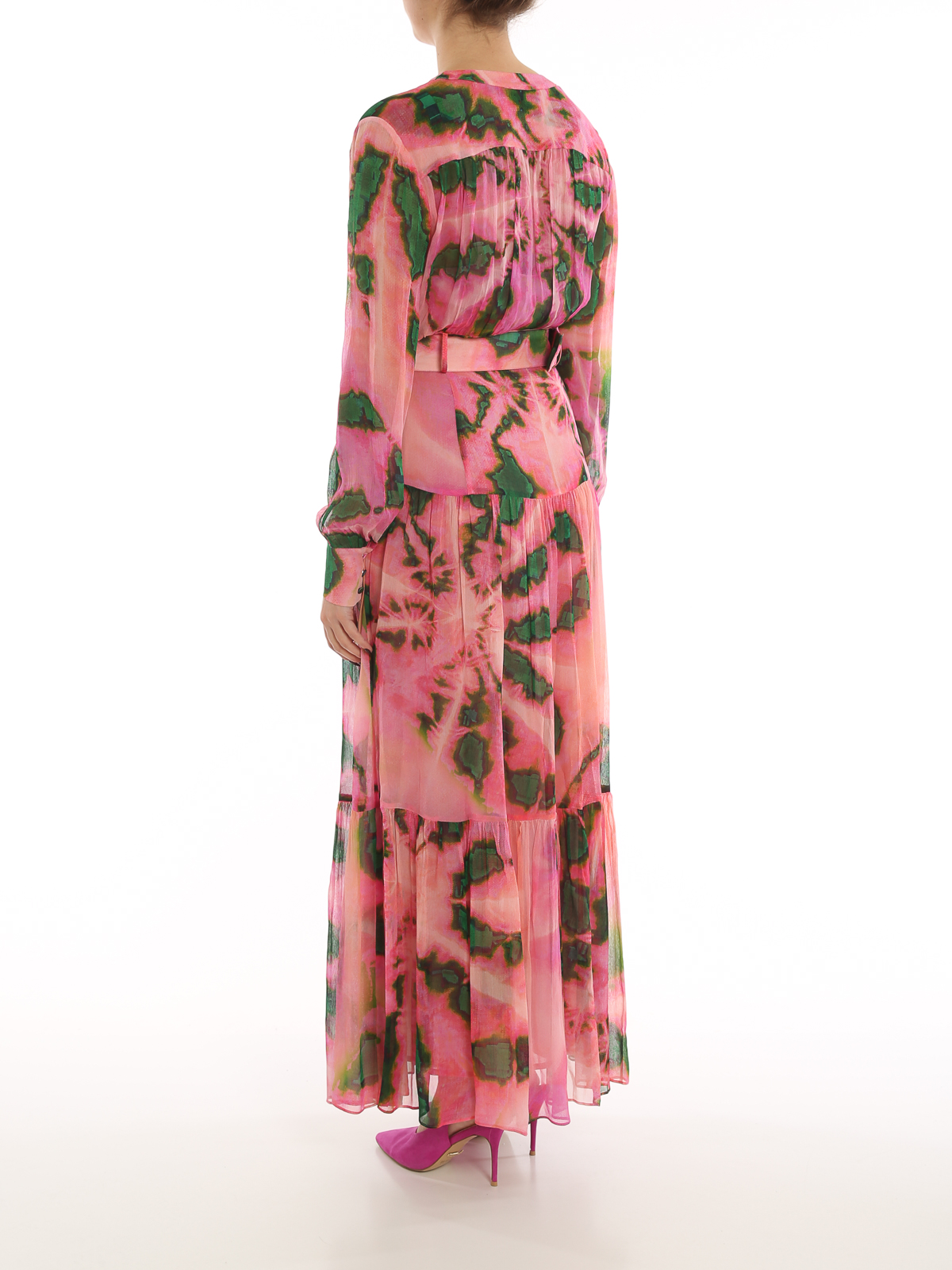 Tie-dye printed creponne long shirt dress detailed with matching belt