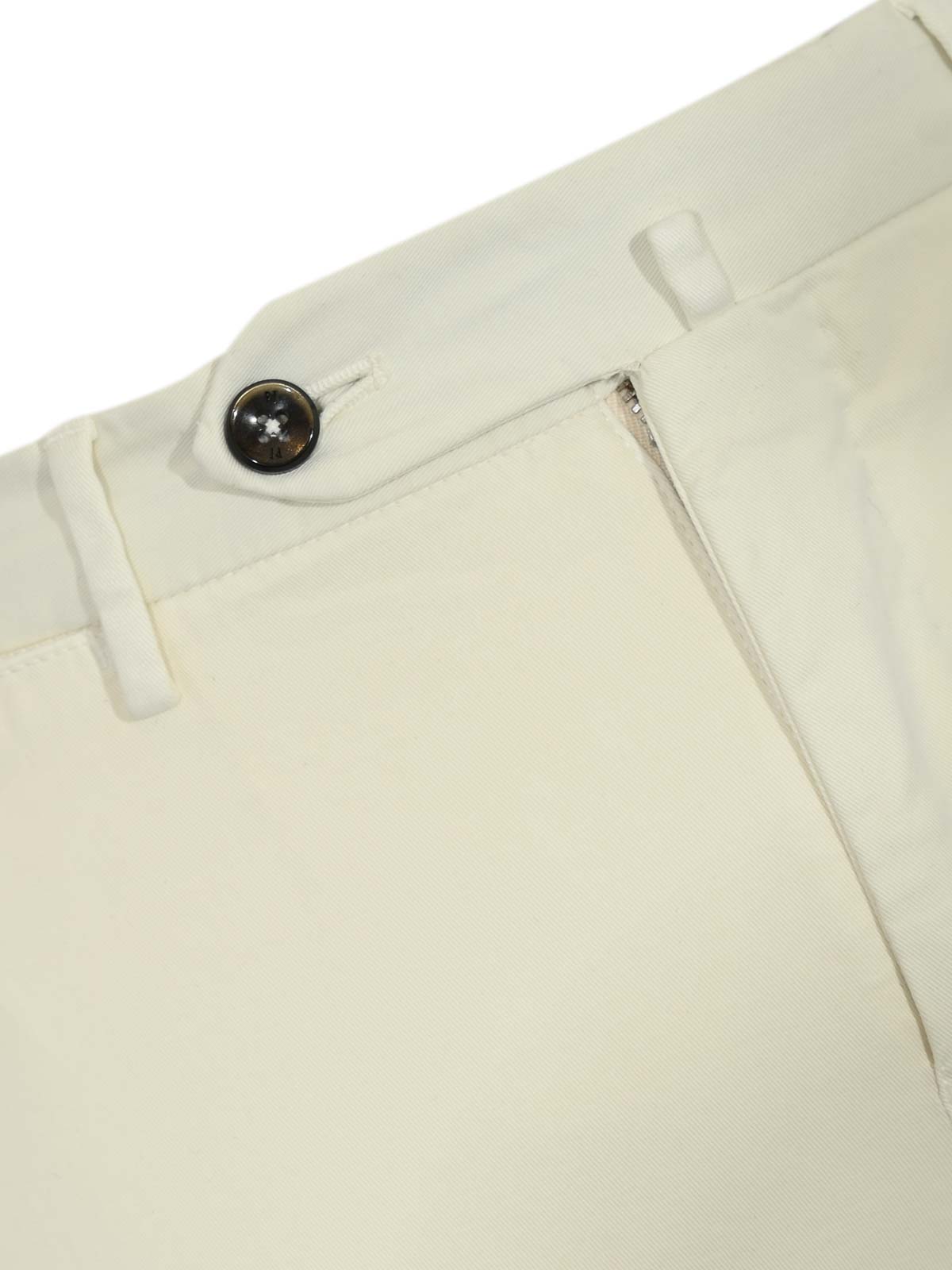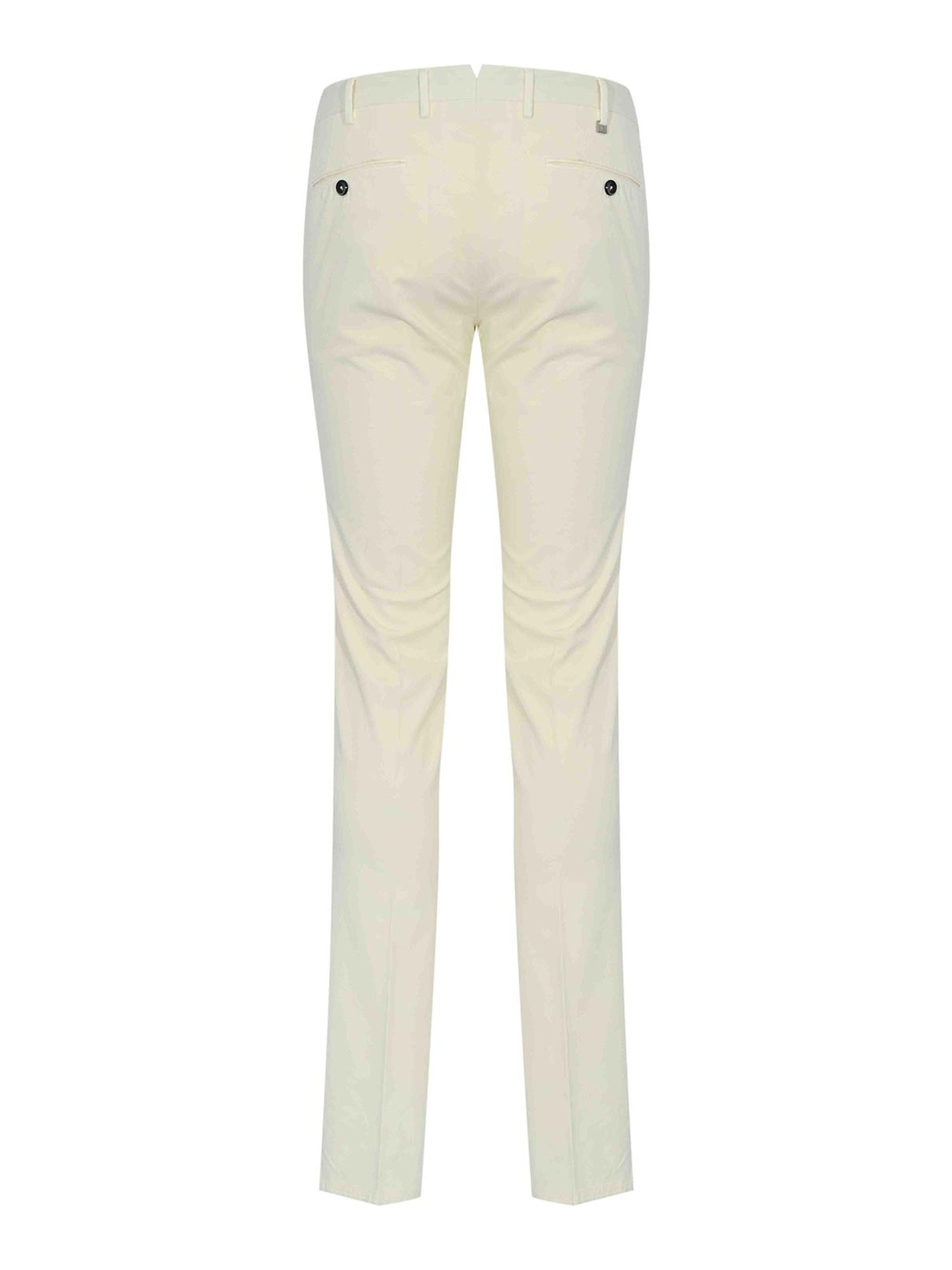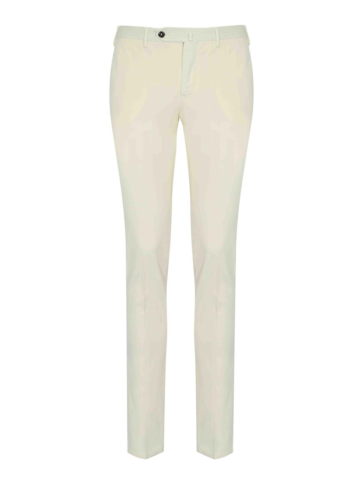 Cotton blend trousers pt torino blend pattern plain white rise mid, rise with belt loops button and hidden zip pockets slanted side pockets and back welt pockets with button length long clean and modern design smooth and comfortable lightweight construction suitable for warm weather tailored construction with attention to lined no fit slim fit