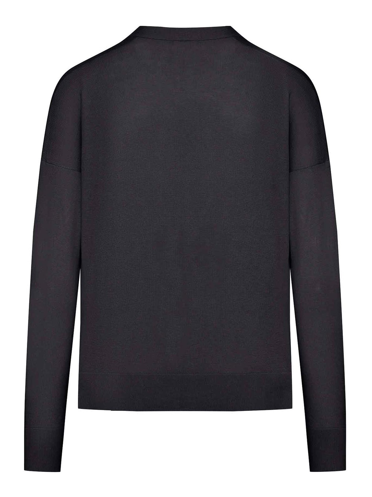 Deep v, neck, button, ribbed hem and cuffs, elasticized, color black