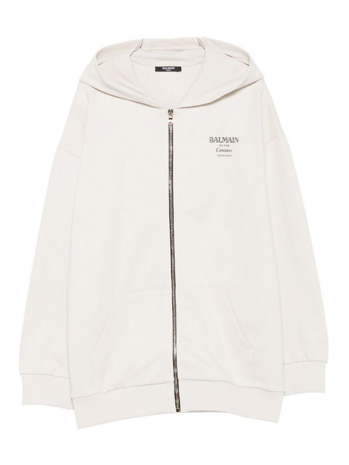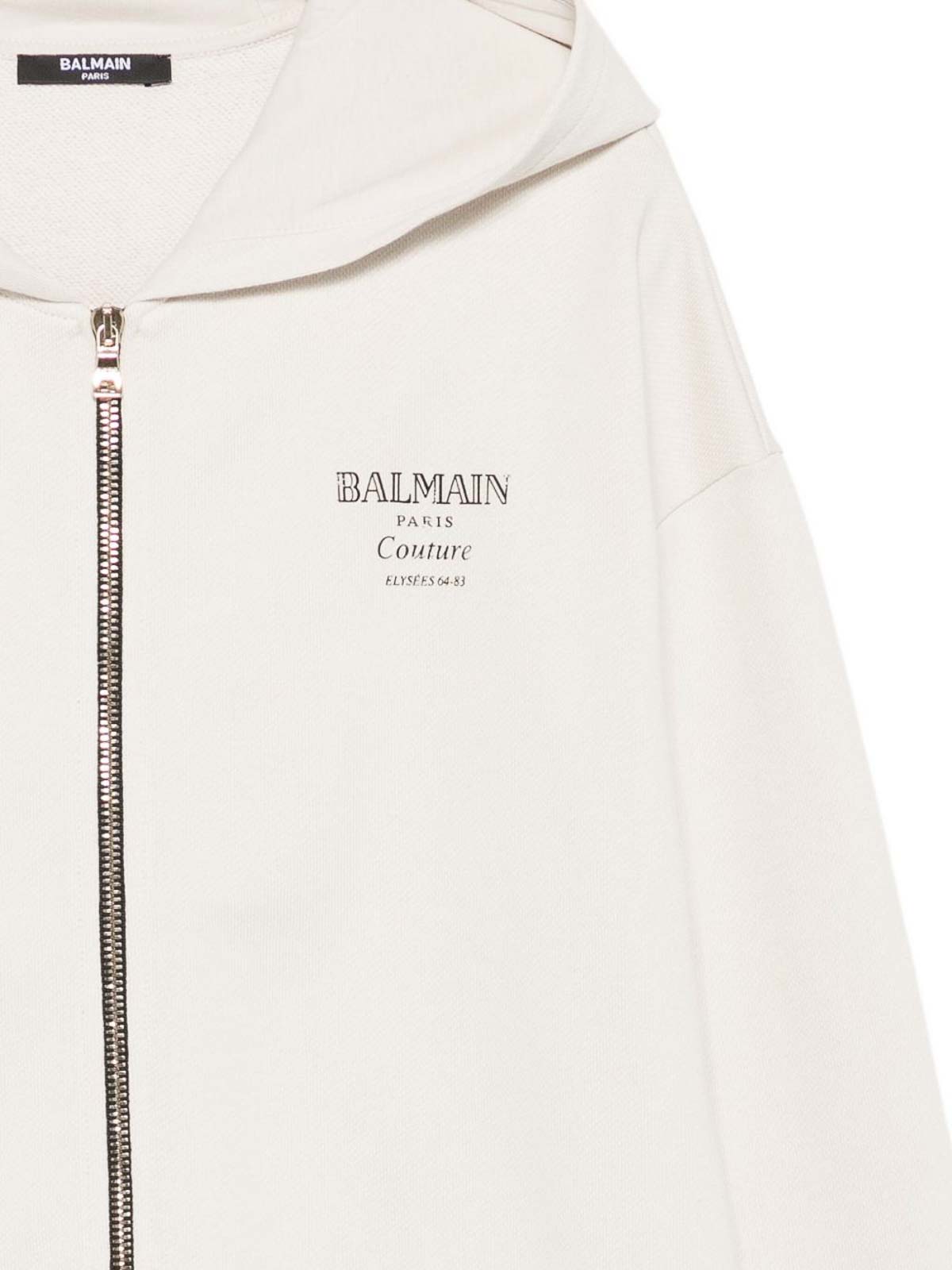 Comfort and style come together in the beige hoodie by balmain kids, designed for everyday wear, it features a practical zip closure, long sleeves, a kangaroo pocket and a printed logo on the chest, a versatile and characterful garment, perfect for the little ones' casual looks , balmain kids, hoodie, beige, cotton, hood, zip closure, long sleeves, kangaroo pocket, printed logo