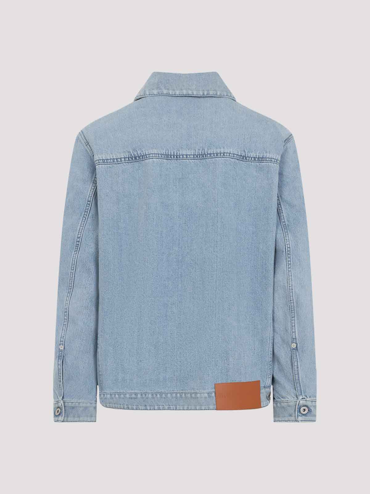 Jil sander light blue cotton jacket. crafted from washed light blue cotton denim, featuring a pointed collar, a front button fastening, two flap pockets on the chest, inseam side pockets, long sleeves with buttoned cuffs, a branded label at the back of the hem, and a full lining.