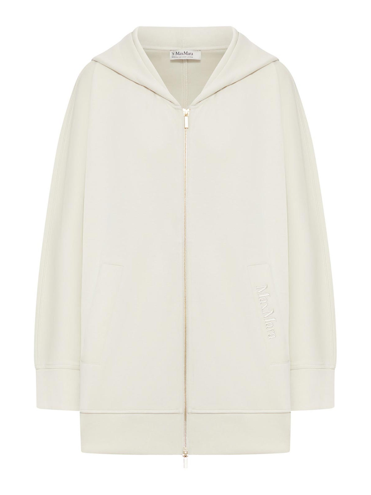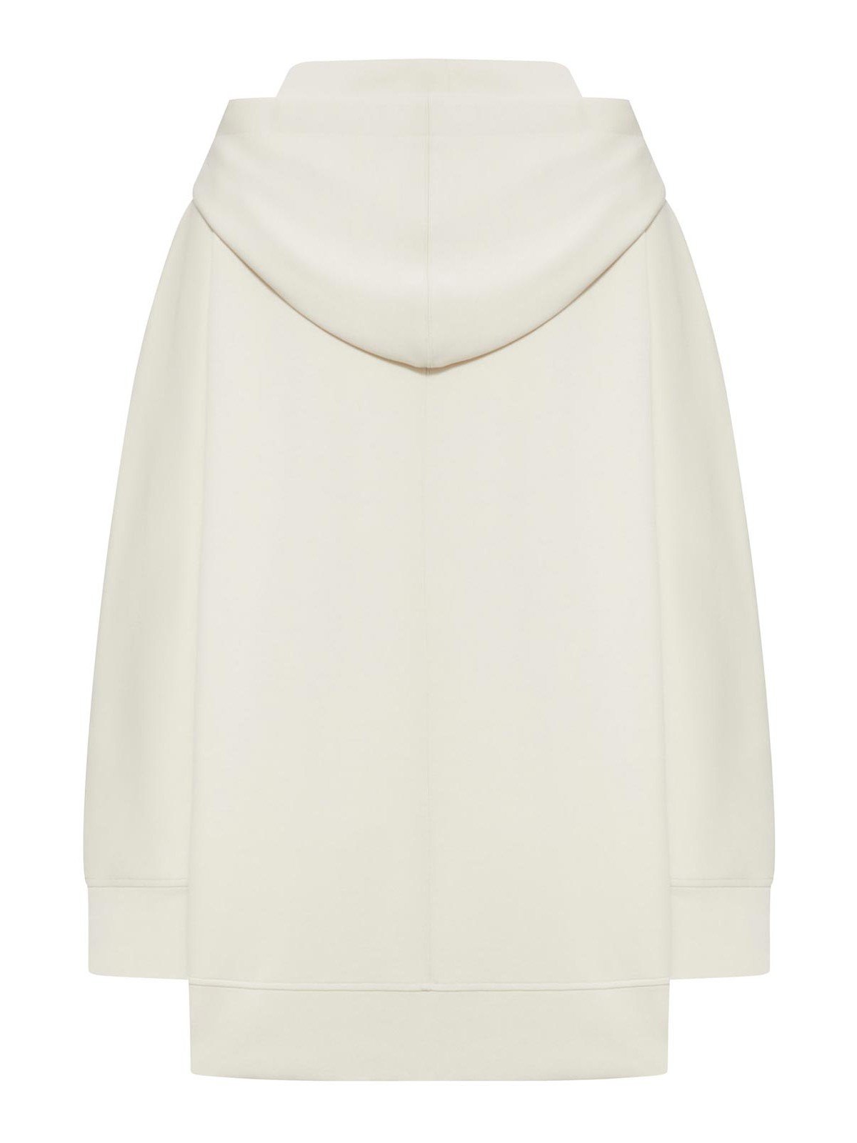 Central buttoning with uncle- long, elastic at the bottom- two pockets on the, pocket with tone-on-tone logo- ivory
