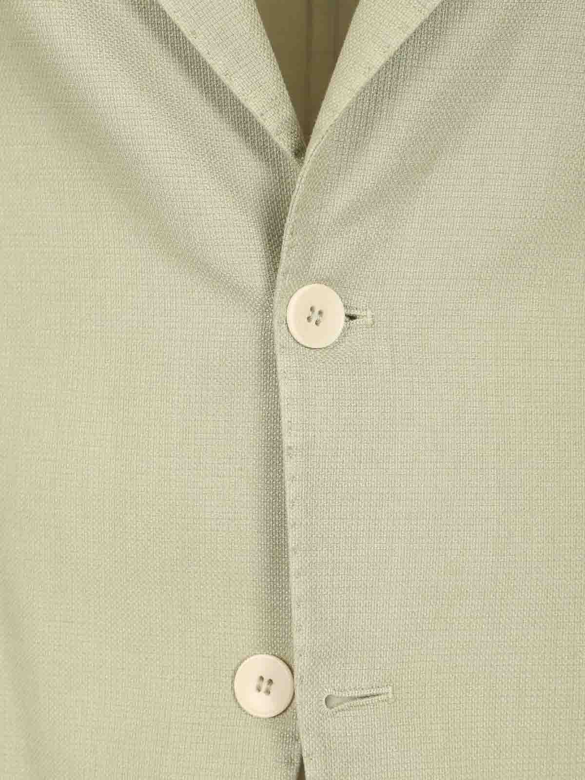 Unlined single breasted blazer with two horn buttons, double back vent and patch pockets