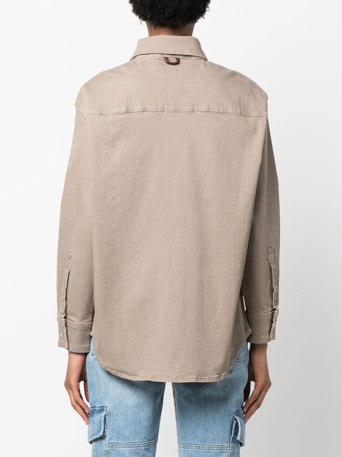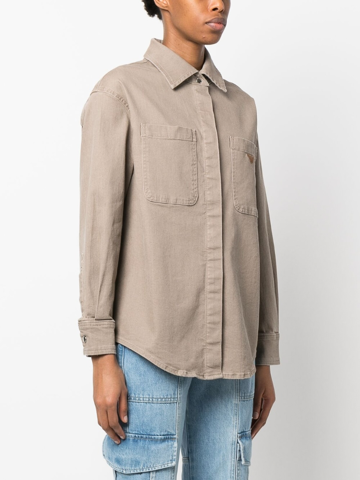 Logo-embroidered cotton shirt from emporio armani featuring beige stretch-cotton classic collar embroidered logo at the chest concealed front button fastening two chest patch pockets long sleeves buttoned-cuff sleeves and curved hem