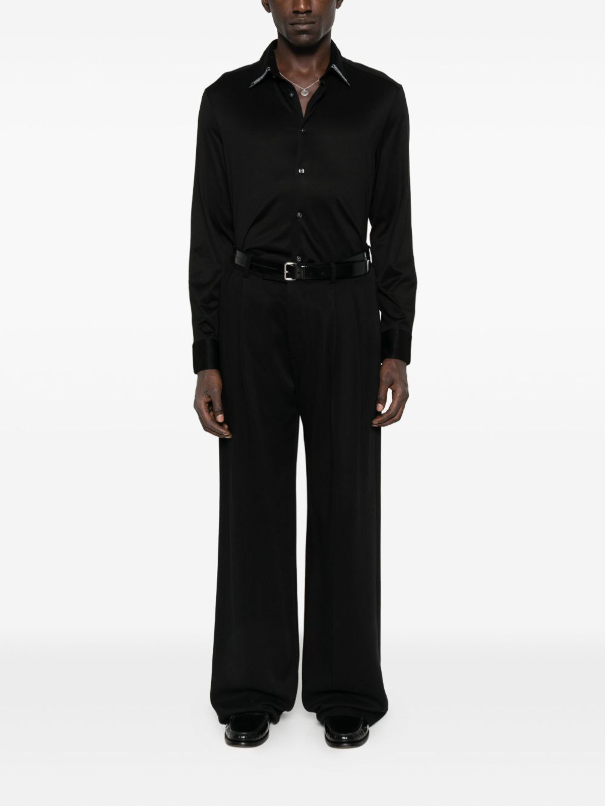 Black long sleeves button fastening collared neck logo plaque yoke detail