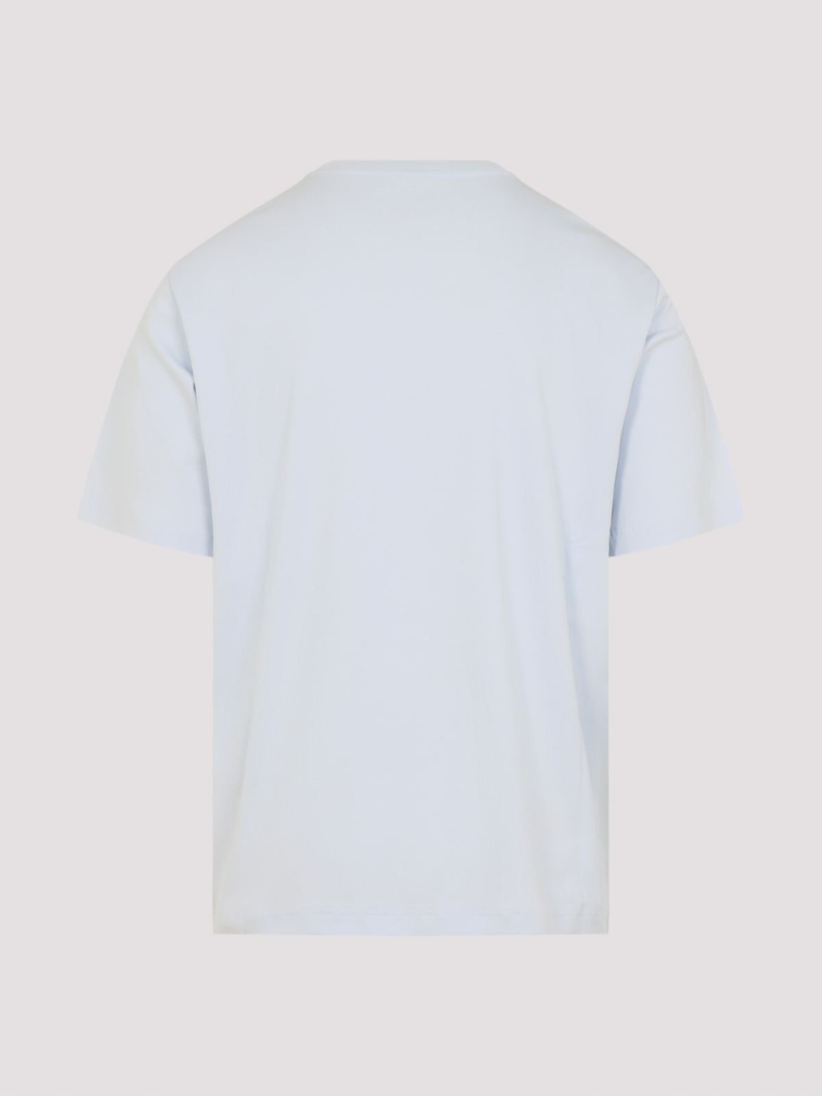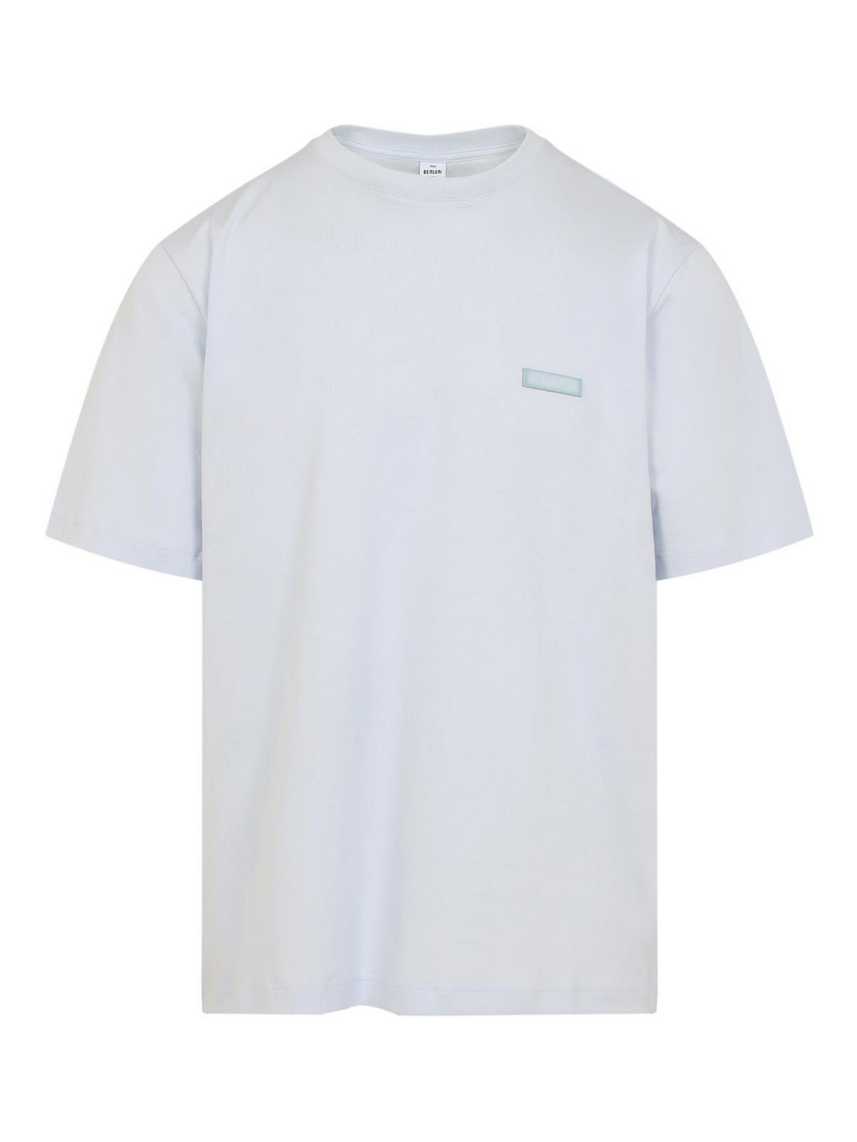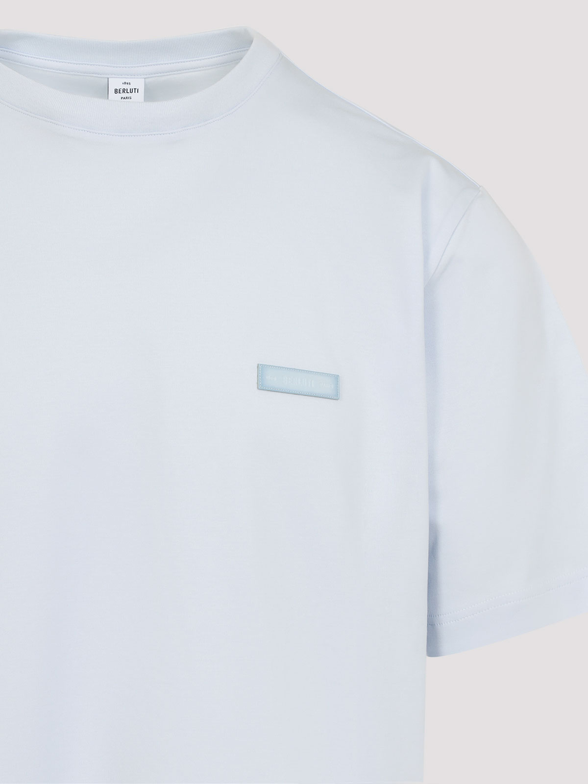 Berluti light blue cotton t-shirt. light blue cotton jersey, round ribbed neckline, leather label with embossed logo placed on the breast, short sleeves, straight hem.
