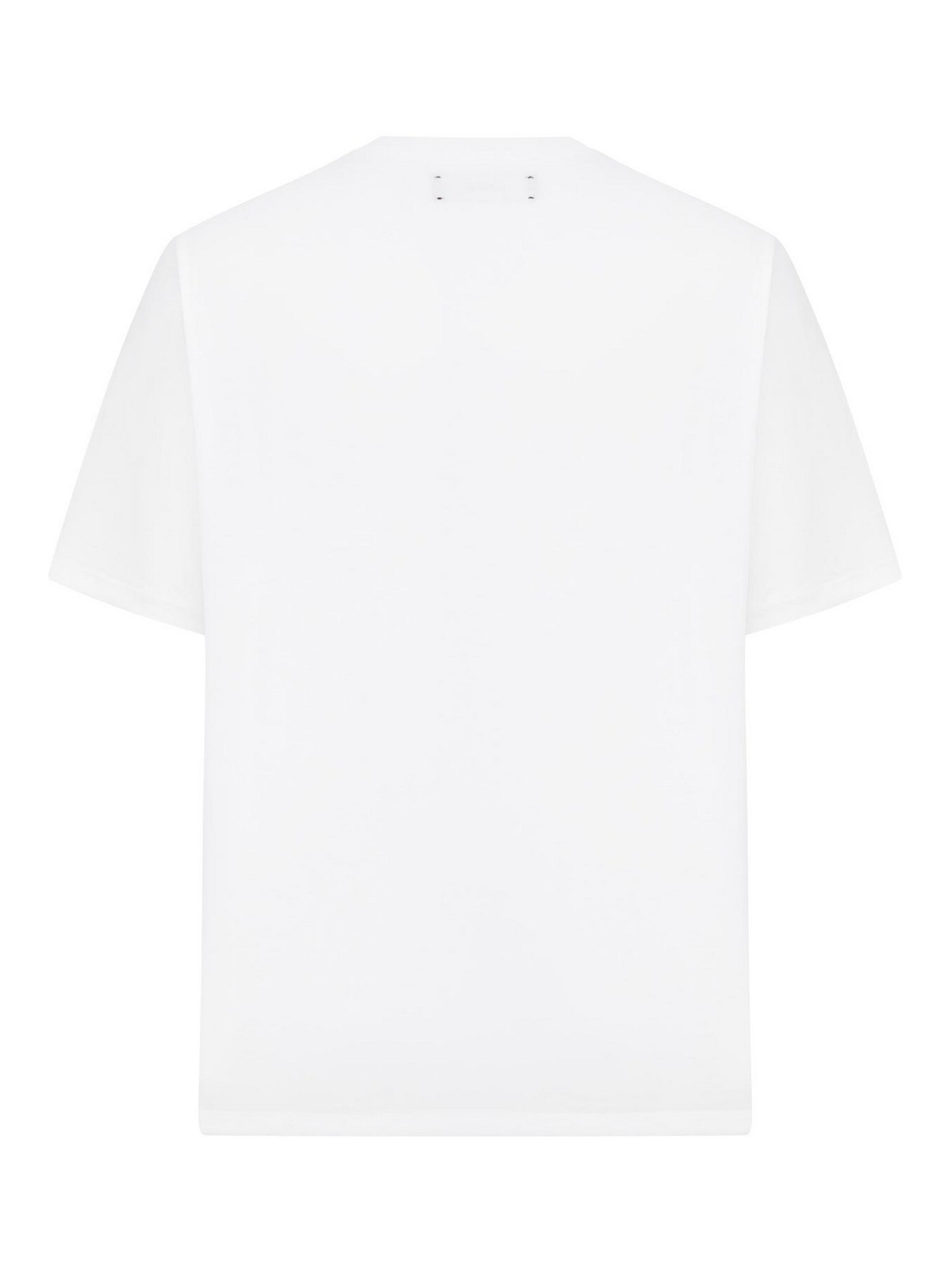 Crew neck, wide short sleeves, contrasting embroidered logo on the chest, straight hem, - color white
