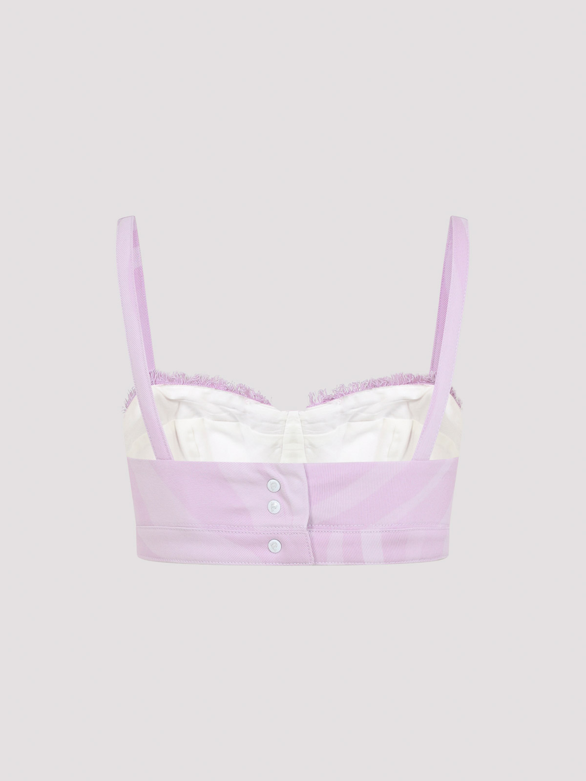 Pucci pink top crafted from pink stretch tonal print all over pre, formed cup fine straps snap button lined