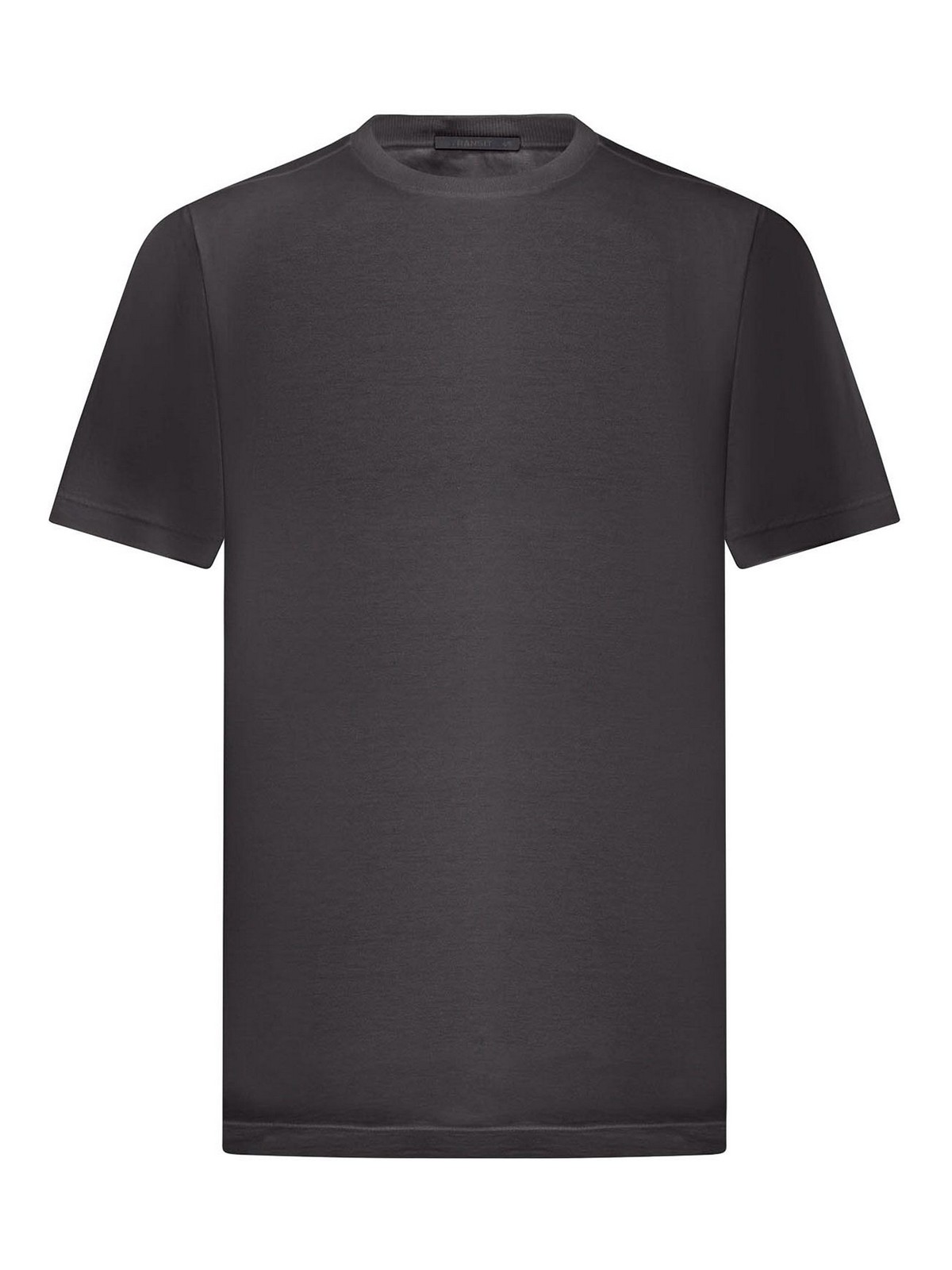 Crew neck, short sleeves, straight hem, -, color charcoal
