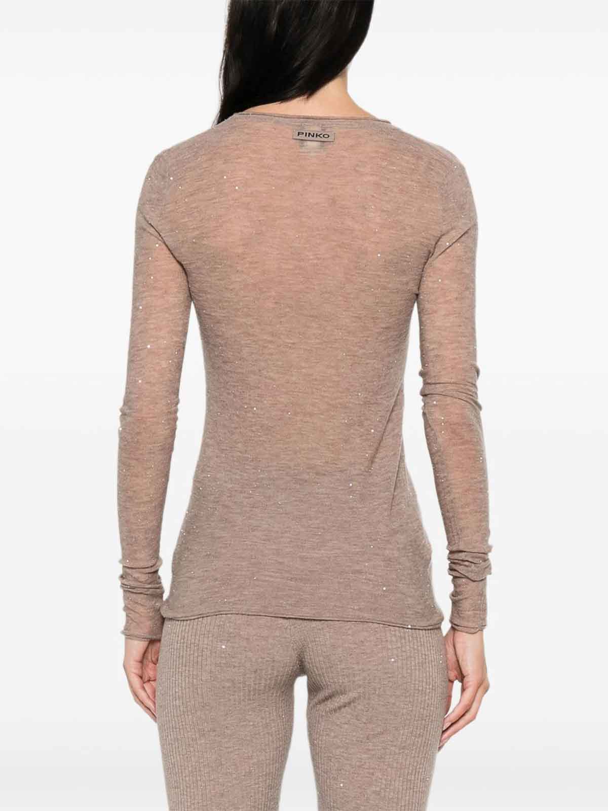 Pinko 'pico' crew neck sweater in beige semi, sheer with micro sequins applied