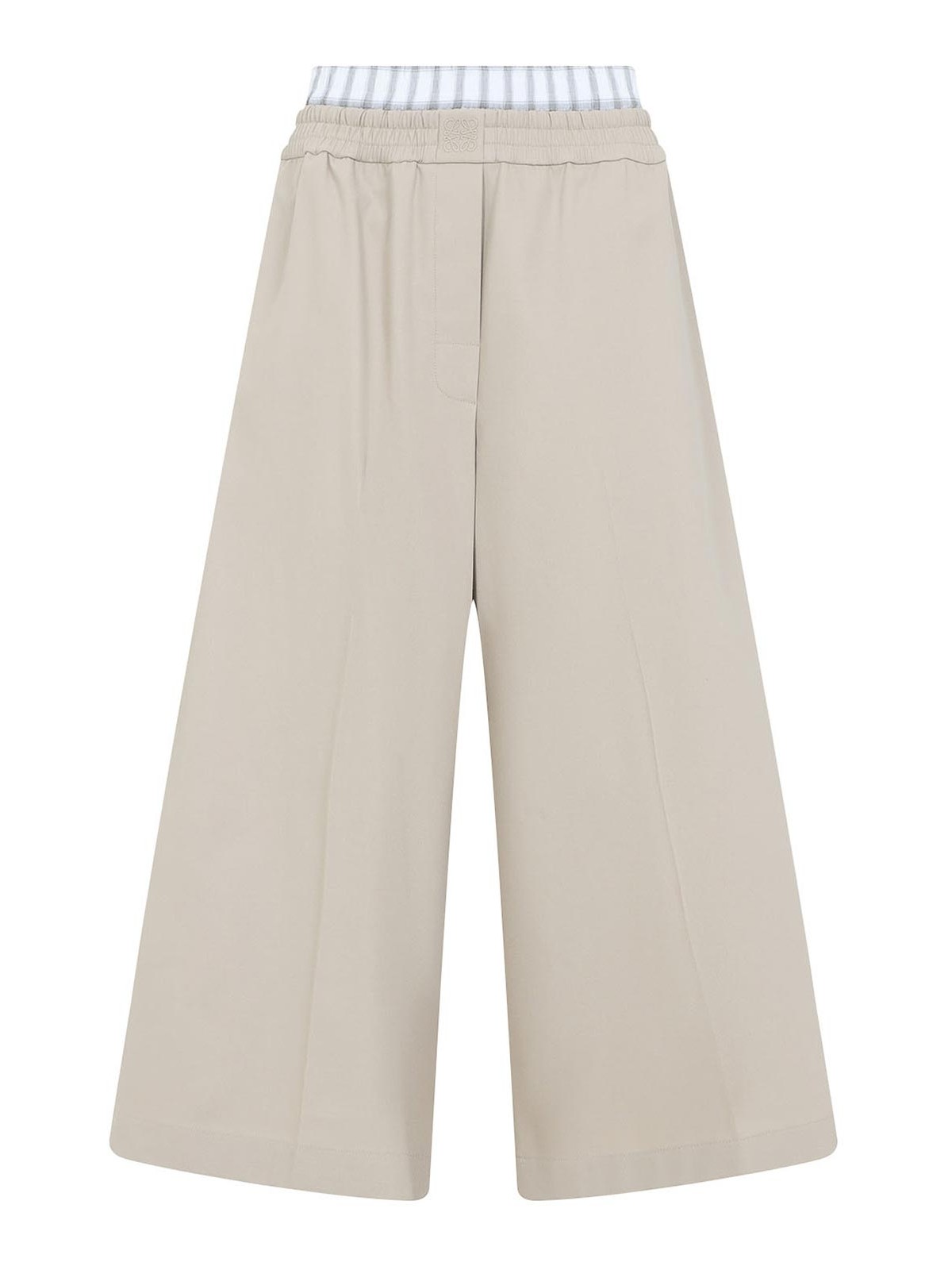Loewe cropped beige cotton pants. crafted from beige cotton twill, double elasticated waistband, patch with embroidered logo on the front, side pockets, two patch pockets, cropped light, relaxed fit.