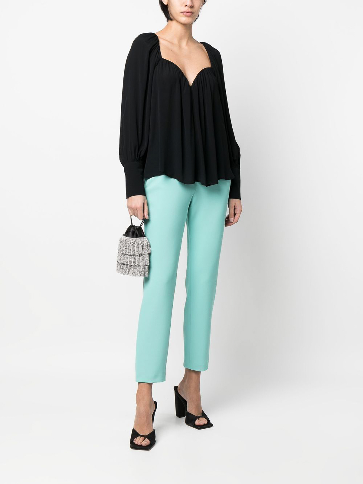 Mint green cropped tailored trousers two side slit pockets, concealed rear zip fastening, tailored cut and cropped leg.