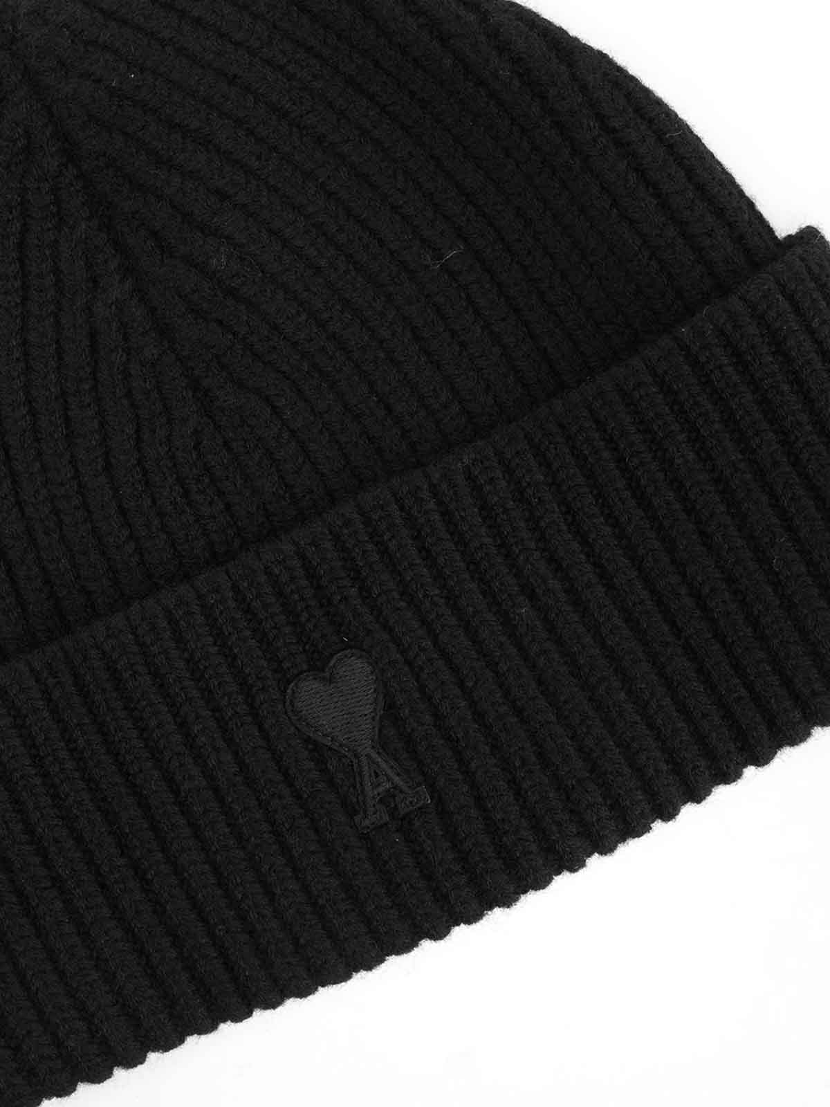 ami de coeur wool knit hat by ami, with ribbed stitch and tone-on-tone ami de coeur patch