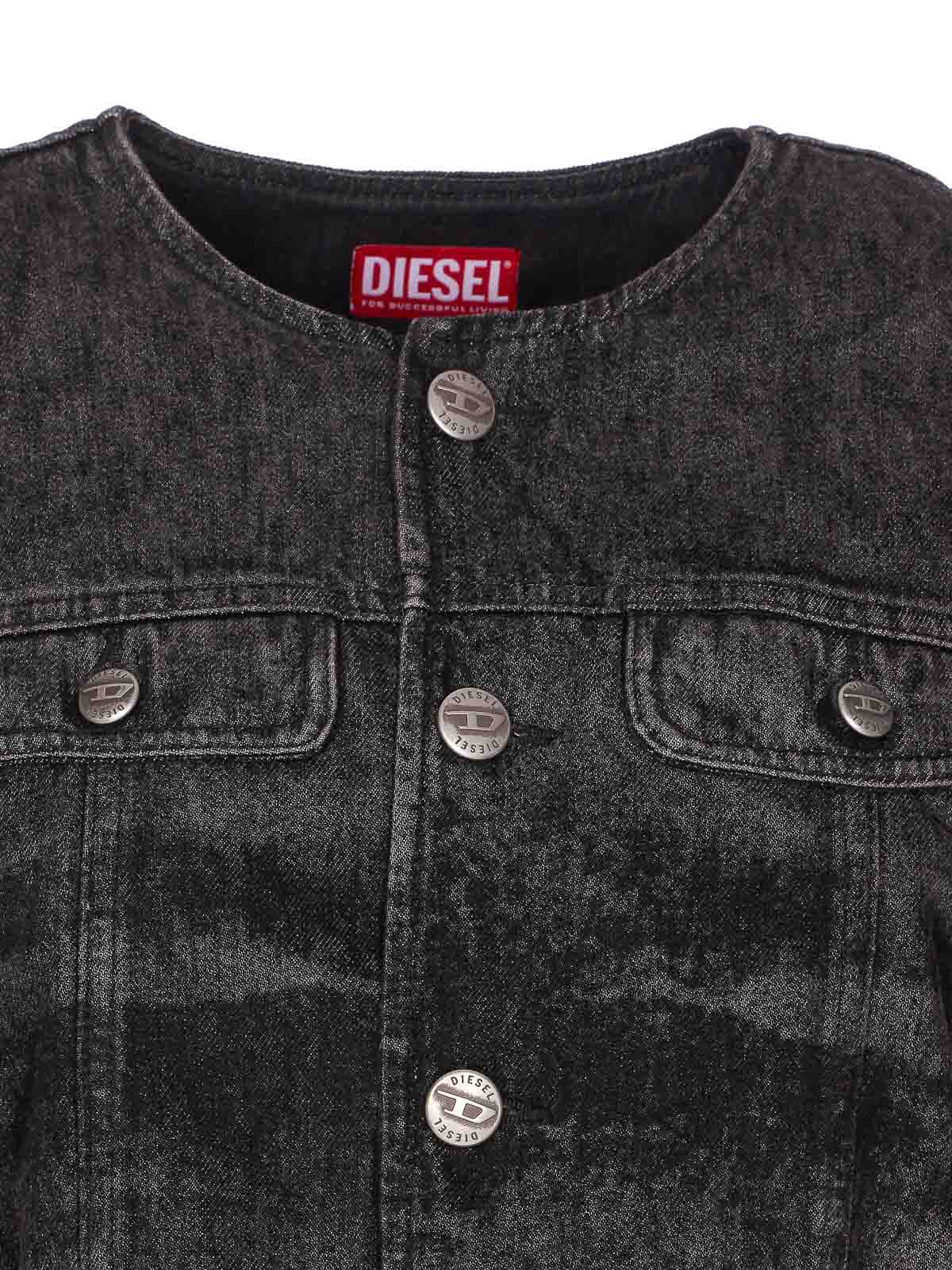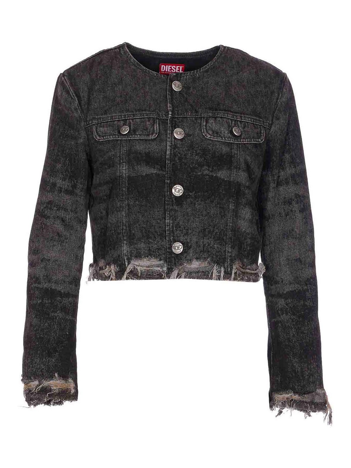 Diesel black de-graffy-fsh denim jacket with buttons long sleeves crewneck distressed crop model